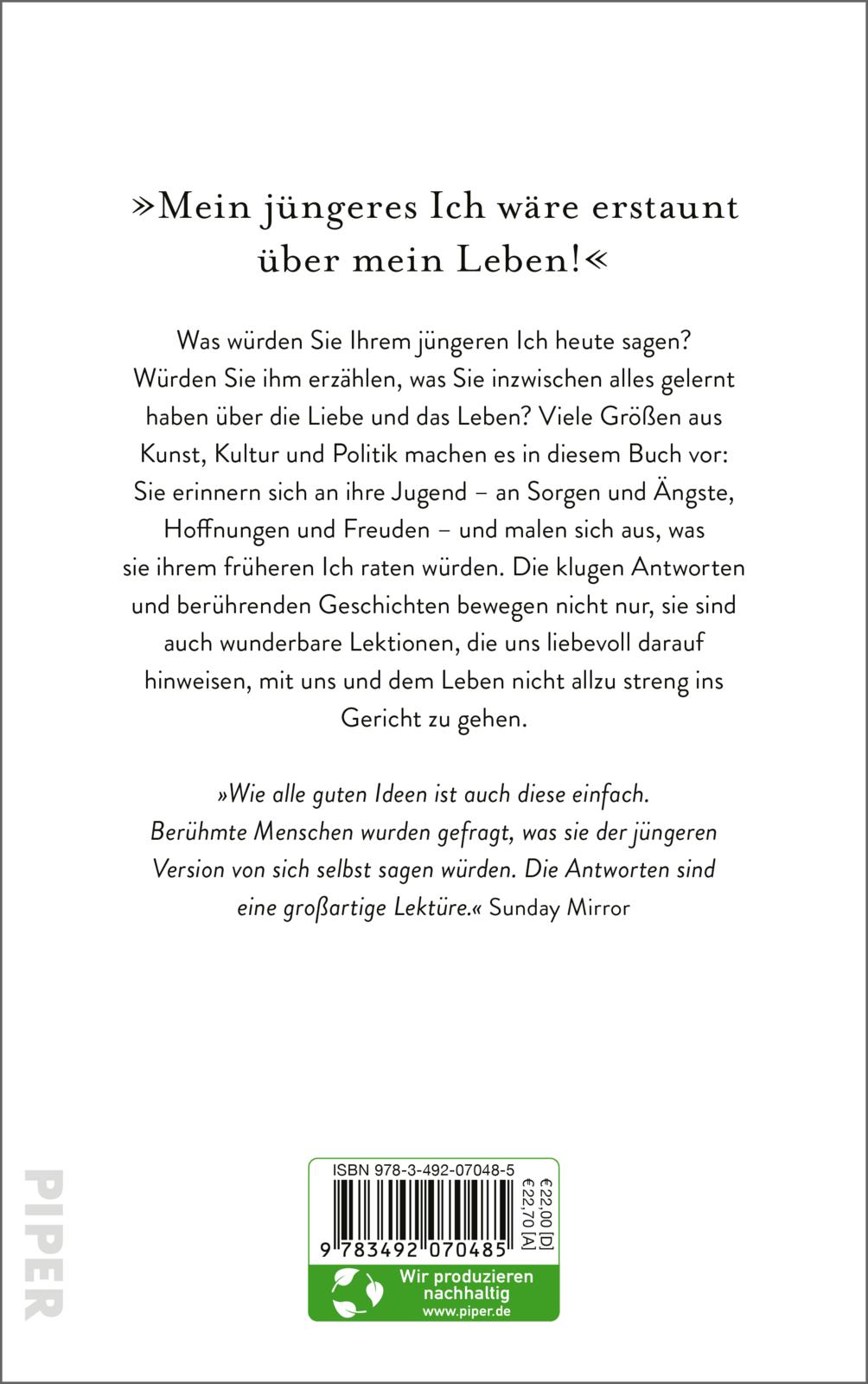 »Wie alle guten Ideen ist auch diese einfach. Berühmte Menschen, von Hollywood-Stars bis zu Sporthelden, wurden gefragt, was sie der jüngeren Version von sich selbst sagen würden. Die Antworten sind eine großartige Lektüre.« Sunday Mirror