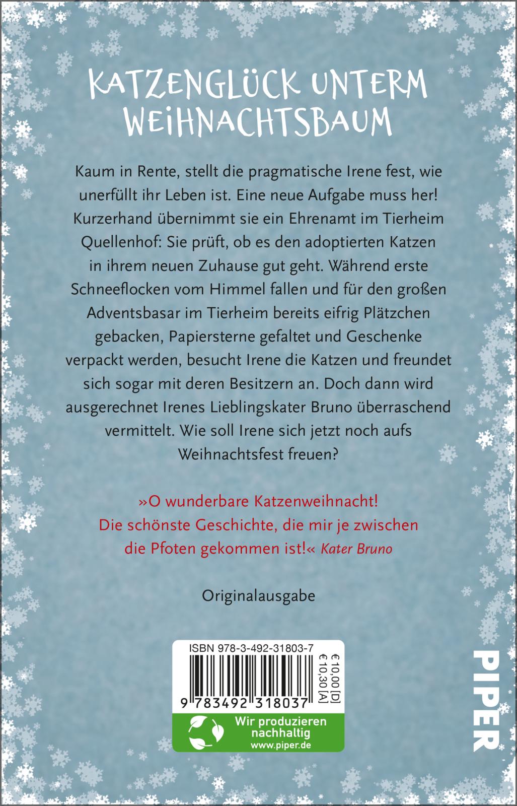 Kaum ist die pragmatische Irene in Rente, stellt sie fest, dass ihr Leben unerfüllt ist. Kurzerhand übernimmt sie ein Ehrenamt im Tierheim Quellenhof: Sie prüft, ob es den adoptierten Katzen in ihrem neuen Zuhause gut geht. Während erste Schneeflocken vom Himmel fallen und sich das Tierheim auf den großen Adventsbasar vorbereitet, besucht sie die Katzen und lernt deren Besitzer kennen. Doch als ihr Lieblingskater Bruno vermittelt wird, ist Irene untröstlich ... wie gut, dass im Tierheim alle zusammenhalten und Irene schließlich ein ganz besonderes Weihnachtsfest bescheren ...
