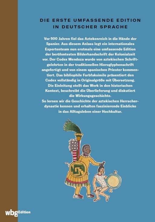 2021 jährt sich zum 500. Mal der Fall des Aztekenreichs. Aus diesem Anlass erscheint erstmals eine wissenschaftliche Edition des Codex Mendoza in deutscher Sprache. Beim Codex Mendoza handelt es sich um die berühmteste Bilderhandschrift der frühen Kolonialzeit. Sie präsentiert nicht nur die Geschichte der aztekischen Herrscherdynastie und die Tributlisten Moteuczomas, sondern gewährt auch Einblick in das Alltagsleben der Azteken.