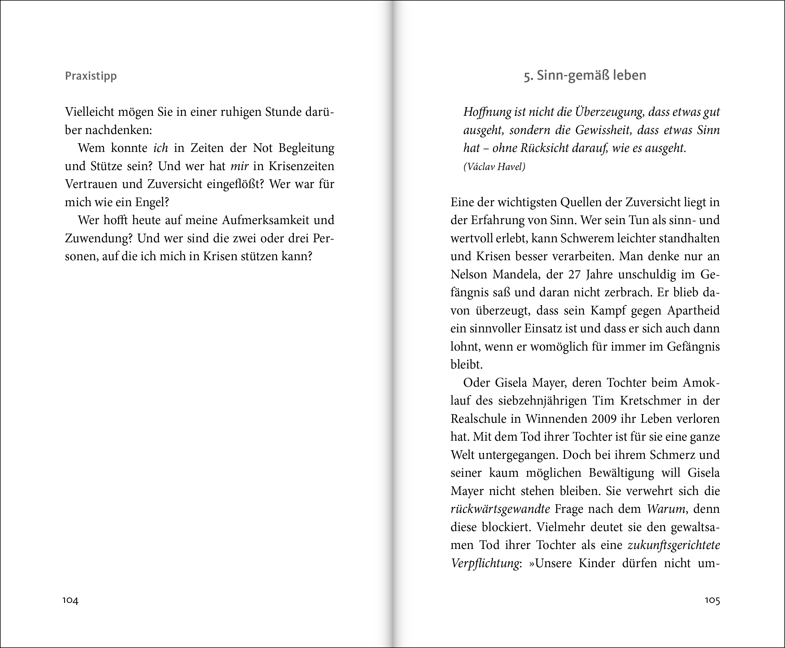 Zuversicht befähigt, den gegenwärtigen Moment schöpferisch zu gestalten. Und sie erweist ihre Kraft darin, dass wir der Zukunft einen gewissen Vertrauensvorschuss entgegenbringen. So geben wir dem Leben die Gelegenheit, uns positiv zu überraschen.