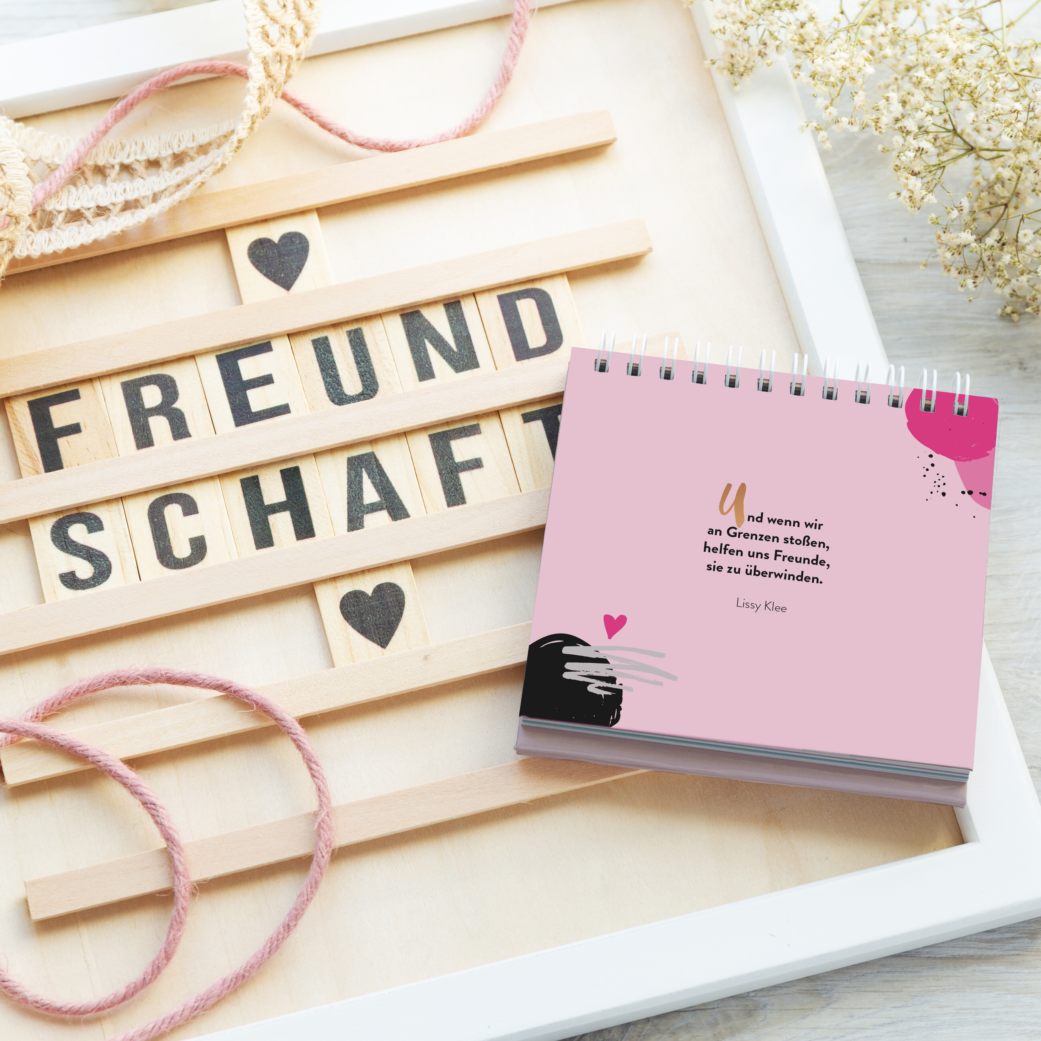 - Dekorativer Aufsteller mit Fotos und Sprüchen rund um das Thema Freundschaft