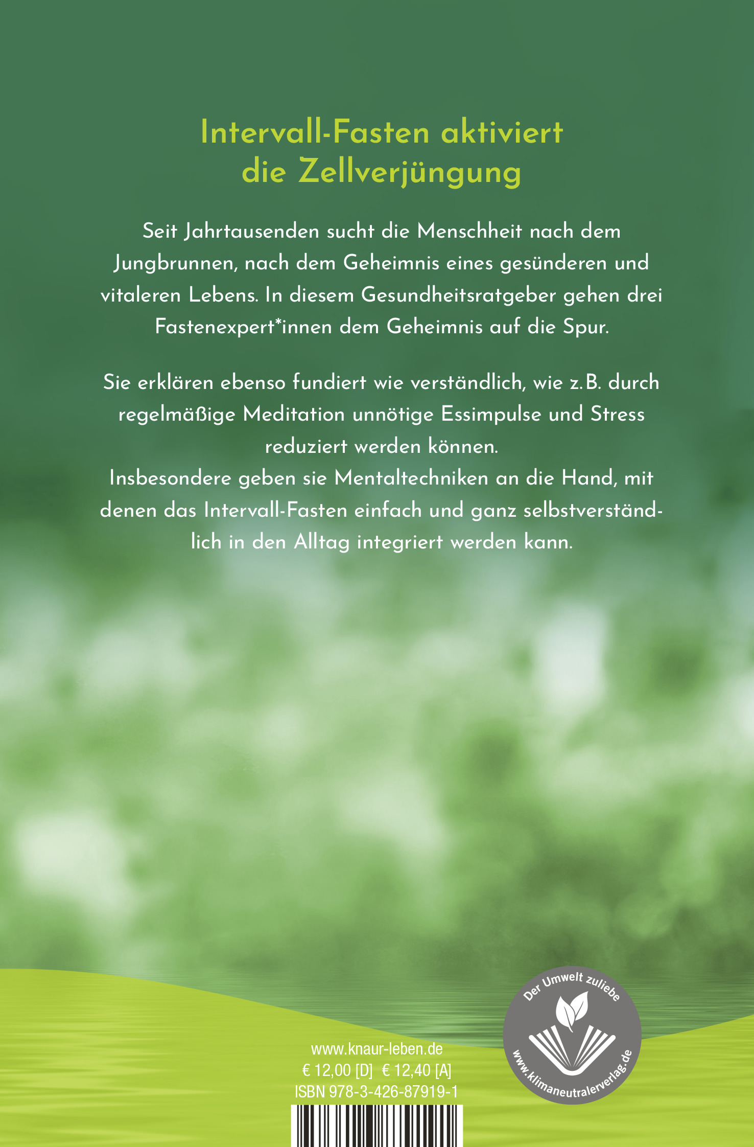 Sie erklären mit wissenschaftlich fundierten Empfehlungen und einfach Tipps zur Umsetzung, wie Intervall-Fasten mit Leichtigkeit in den Alltag integriert werden kann und so zu einem nachhaltigen und gesundheitsfördernden Lebensstil führt. Denn durch Intervall-Fasten wird die sogenannte Autophagie des Körpers aktiviert, die Zellreinigung und Zellregeneration. Dies kann uns nicht nur vor einer ganzen Reihe an Krankheiten schützen, es aktiviert auch Anti-Aging-Prozesse und wirkt so als reinster Jungbrunnen.