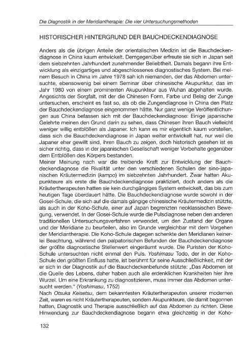 Das Werk „Einführung in die Meridiantherapie: Klassische Japanische Akupunktur" zeichnet sich durch die Klarheit und Einfachheit seines Stils aus, wobei es in Japan als Einführung in diesen Themenbereich die größte Anerkennung genießt. Die theoretischen und historischen Grundlagen, das diagnostische Konzept und die Behandlungsstrategien der Meridiantherapie werden ausführlichst behandelt. Der Autor führt uns Schritt für Schritt in die Puls- und Bauchdeckendiagnostik ein, und er zeigt Wege auf, wie die Konzepte und Techniken der Meridiantherapie in andere Stilrichtungen der Akupunktur einzubauen sind. Eingestreut in den Text sind Fallbeispiele und Anekdoten aus dem Erfahrungsschatz des Autors.