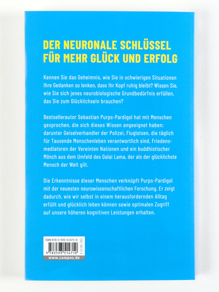 Kennen Sie das Geheimnis, wie Sie in schwierigen Situationen Ihre Gedanken so lenken, dass Ihr Kopf ruhig bleibt? Wissen Sie, wie Sie sich jenes neurobiologische Grundbedürfnis erfüllen, das Sie zum Glücklichsein brauchen?Bestsellerautor Sebastian Purps-Pardigol hat mit Menschen gesprochen, die sich dieses Wissen angeeignet haben: darunter Geiselverhandler der Polizei, Fluglotsen, die täglich für Tausende Menschenleben verantwortlich sind, Friedensmediatoren der Vereinten Nationen und ein buddhistischer Mönch aus dem Umfeld des Dalai Lama, der als der glücklichste Mensch der Welt gilt.Die Erkenntnisse dieser Menschen verknüpft Purps-Pardigol mit der neuesten neurowissenschaftlichen Forschung. Er zeigt dadurch, wie wir selbst in einem herausfordernden Alltag erfüllt und glücklich leben können sowie optimalen Zugriff auf unsere höheren kognitiven Leistungen erhalten.