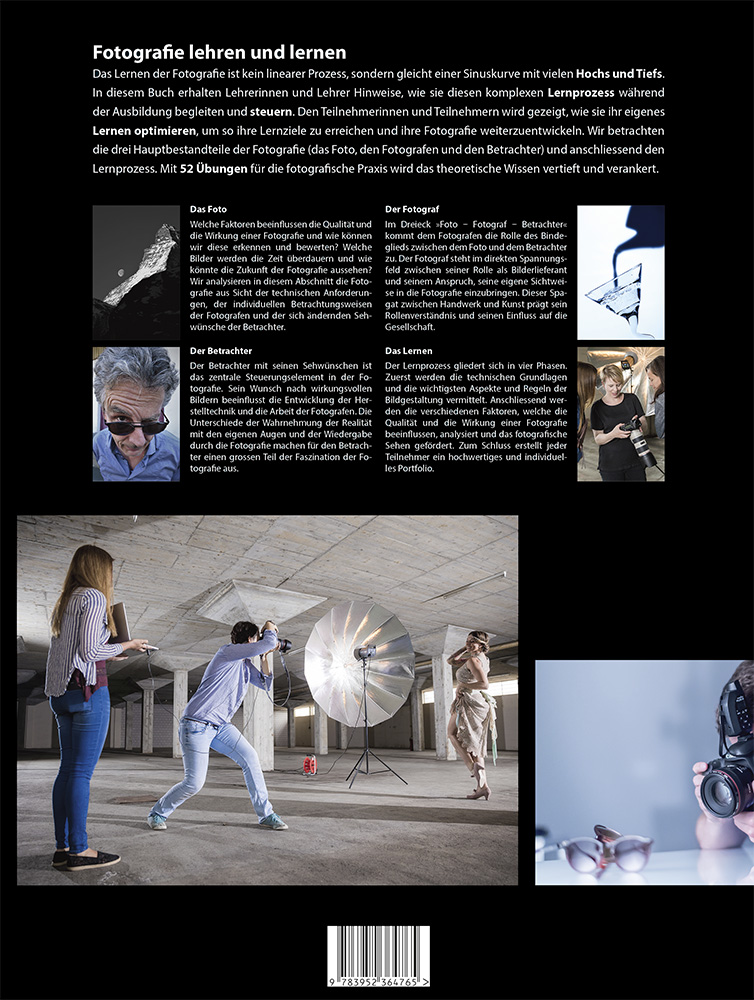 Das Lernen der Fotografie ist kein linearer Prozess, sondern gleicht einer Sinuskurve mit vielen Hochs und Tiefs. In diesem Buch erhalten Lehrerinnen und Lehrer Hinweise, wie sie diesen komplexen Lernprozess während der Ausbildung begleiten und steuern. Den Teilnehmerinnen und Teilnehmern wird gezeigt, wie sie ihr eigenes Lernen optimieren, um so ihre Lernziele zu erreichen und ihre Fotografie weiterzuentwickeln. Wir betrachten die drei Hauptbestandteile der Fotografie (das Foto, den Fotografen und den Betrachter) und anschliessend den Lernprozess. Mit 52 Übungen für die fotografische Praxis wird das theoretische Wissen vertieft und verankert.Das FotoWelche Faktoren beeinflussen die Qualität und die Wirkung einer Fotografie und wie können wir diese erkennen und bewerten? Welche Bilder werden die Zeit überdauern und wie könnte die Zukunft der Fotografie aussehen? Wir analysieren in diesem Abschnitt die Fotografie aus Sicht der technischen Anforderungen, der individuellen Betrachtungsweisen der Fotografen und der sich ändernden Sehwünsche der Betrachter.Der FotografIm Dreieck »Foto - Fotograf - Betrachter« kommt dem Fotografen die Rolle des Bindeglieds zwischen dem Foto und dem Betrachter zu. Der Fotograf steht im direkten Spannungsfeld zwischen seiner Rolle als Bilderlieferant und seinem Anspruch, seine eigene Sichtweise in die Fotografie einzubringen. Dieser Spagat zwischen Handwerk und Kunst prägt sein Rollenverständnis und seinen Einfluss auf die Gesellschaft.Der BetrachterDer Betrachter mit seinen Sehwünschen ist das zentrale Steuerungselement in der Fotografie. Sein Wunsch nach wirkungsvollen Bildern beeinflusst die Entwicklung der Herstelltechnik und die Arbeit der Fotografen. Die Unterschiede der Wahrnehmung der Realität mit den eigenen Augen und der Wiedergabe durch die Fotografie machen für den Betrachter einen grossen Teil der Faszination der Fotografie aus.Das LernenDer Lernprozess gliedert sich in vier Phasen. Zuerst werden die technischen Grundlagen und die wichtigsten Aspekte und Regeln der Bildgestaltung vermittelt. Anschliessend werden die verschiedenen Faktoren, welche die Qualität und die Wirkung einer Fotografie beeinflussen, analysiert und das fotografische Sehen gefördert. Zum Schluss erstellt jeder Teilnehmer ein hochwertiges und individuelles Portfolio.