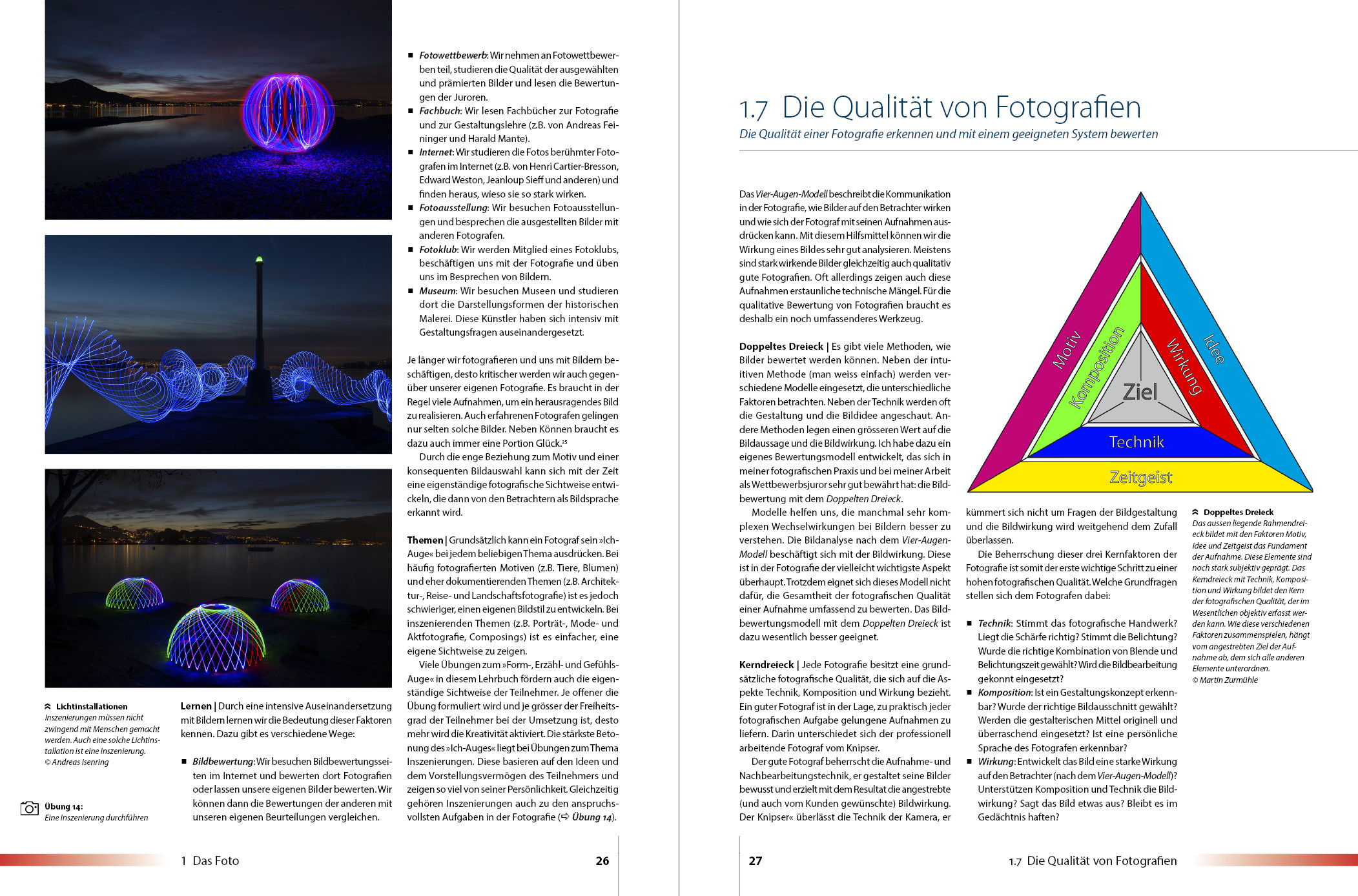 4.1 Das Vermitteln der Fotografie / 4.2 Die technischen Grundlagen / 4.3 Die Aufnahmetechnik / 4.4 Die Bildbearbeitung / 4.5 Die Gesetze des Lichts / 4.6 Das gestalterische Können / 4.7 Das fotografische Sehen / 4.8 Das Portfolio / 4.9 Der Modelllehrgang