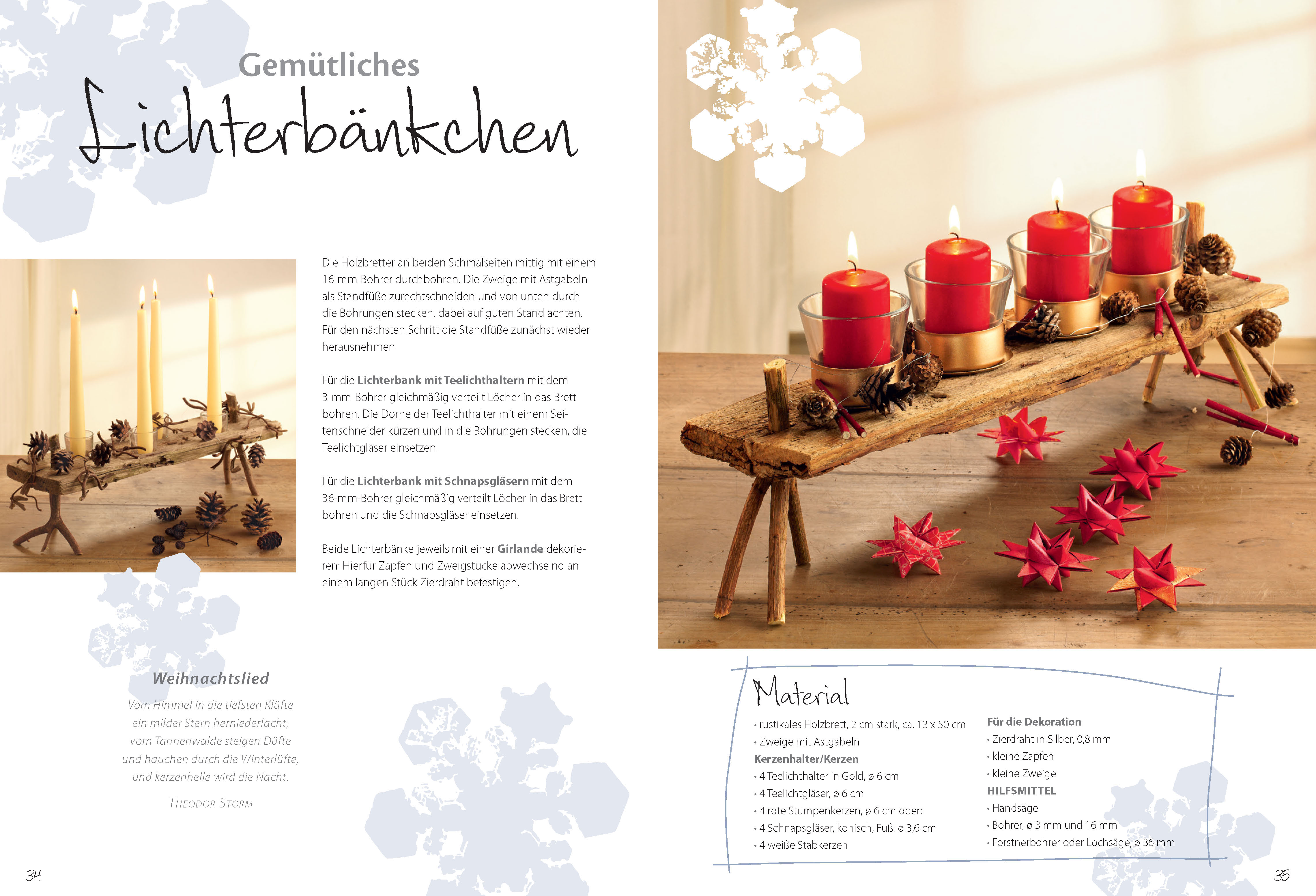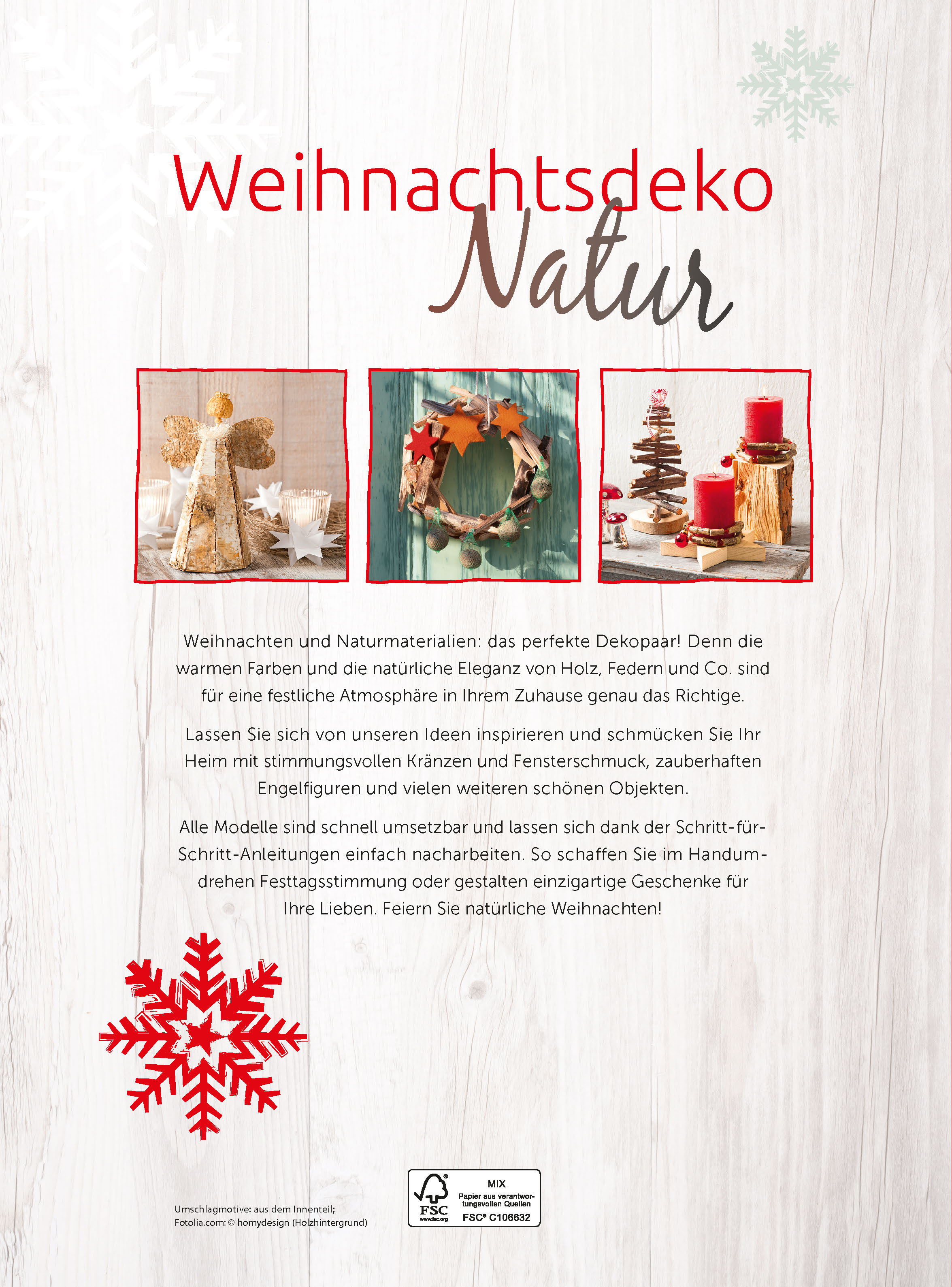 Lassen Sie sich von unseren Ideen inspirieren und schmücken Sie Ihr Heim mit stimmungsvollen Kränzen und Fensterschmuck, zauberhaften Engelfiguren und vielen weiteren schönen Objekten. Dabei entfalten alle Dekostücke besonders durch ihre Schlichtheit ihre einzigartige Raumwirkung. Alle Modelle sind schnell umsetzbar und lassen sich dank der Schritt-für-Schritt-Anleitungen einfach nacharbeiten. So schaffen Sie im Handumdrehen Festtagsstimmung.