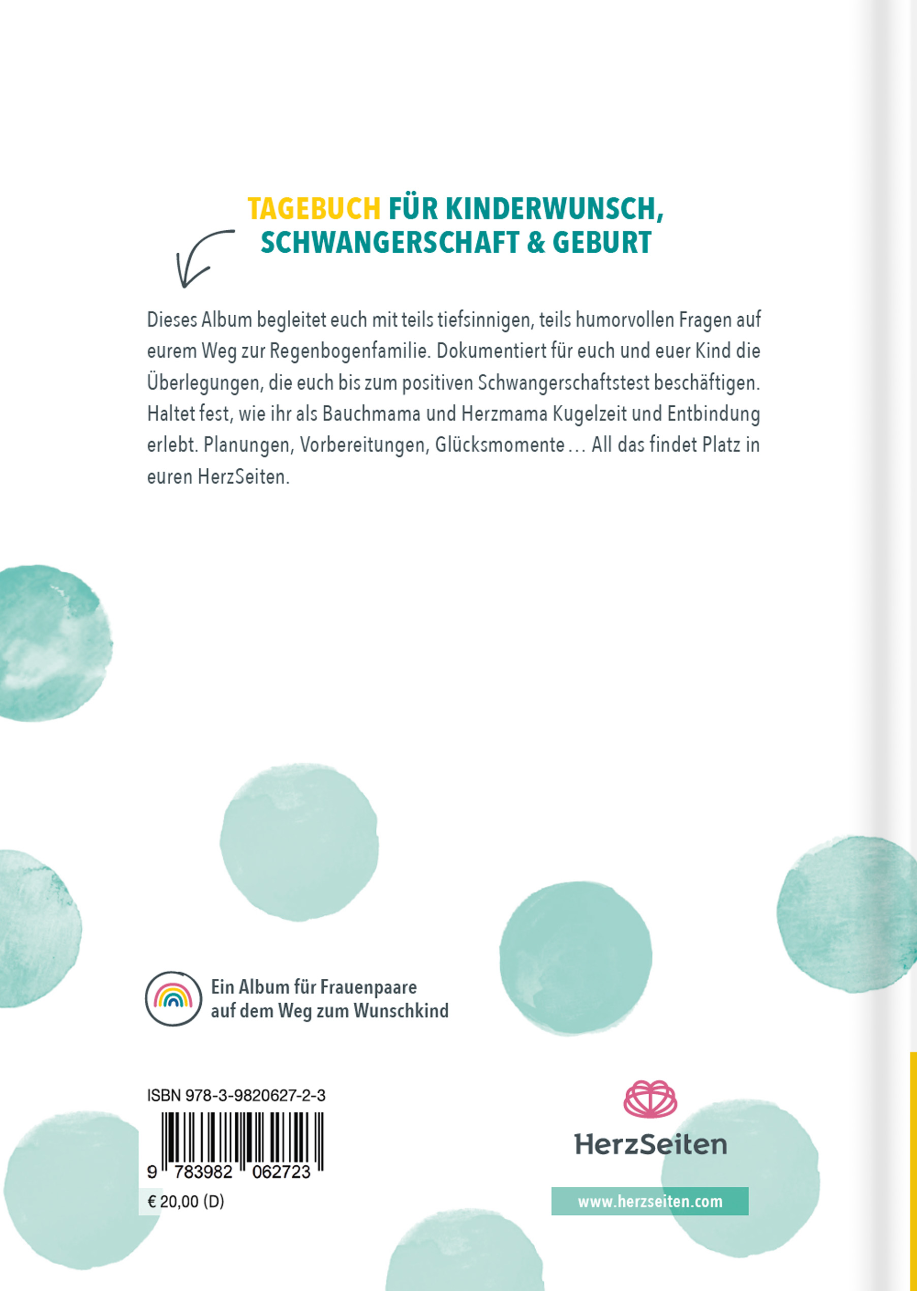 Das Buch dokumentiert die Überlegungen, die die werdenden Mamas bis zum positiven Schwangerschaftstest beschäftigt haben, und hält fest, wie die Bauchmama und Herzmama Kugelzeit und Entbindung erlebt haben. Planungen, Vorbereitungen, Glücksmomente. All das findet Platz in diesem Eintragalbum.