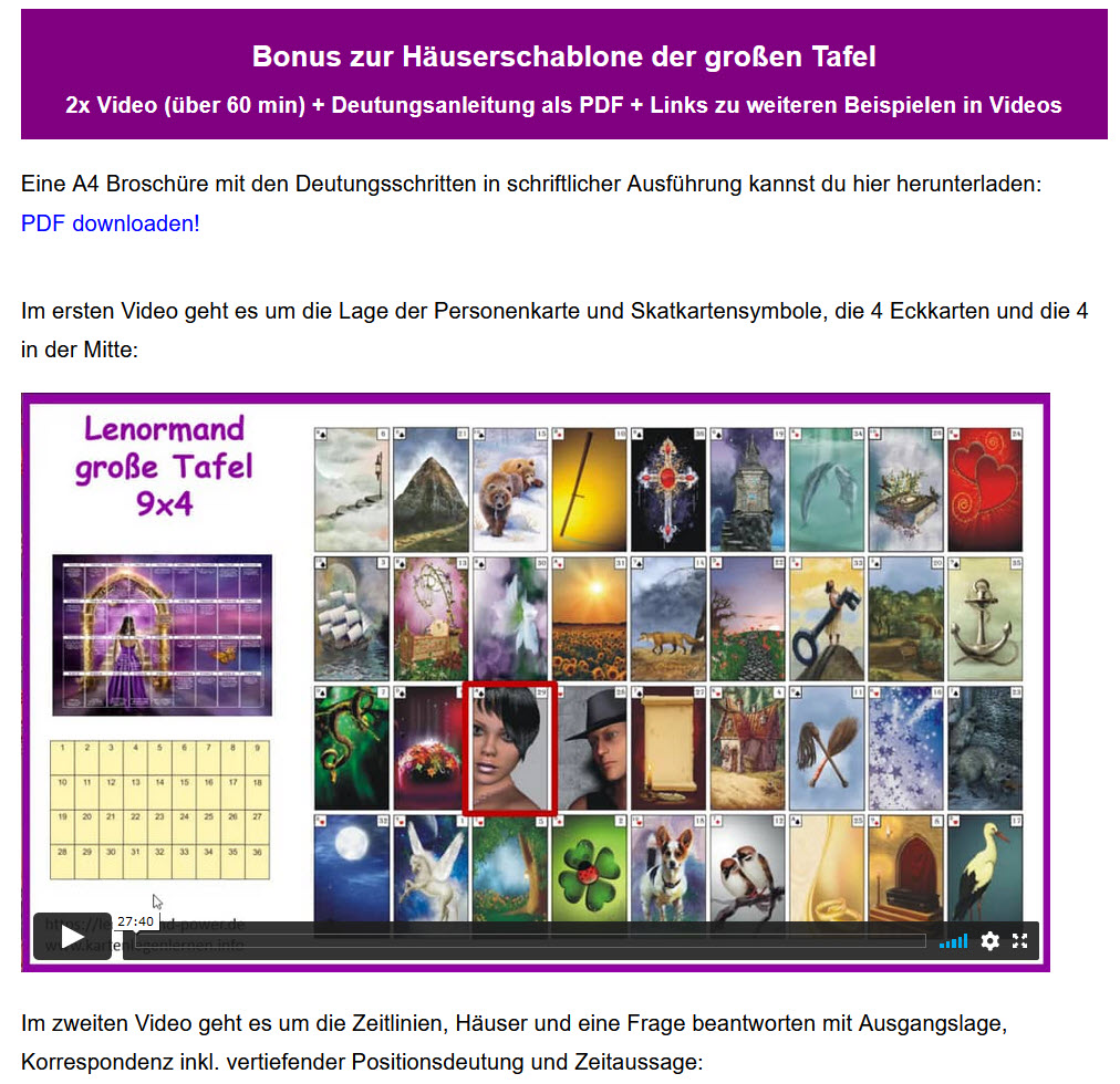 Kartenlegen Tischdecke als Unterlage zur Lenormand Häuserdeutung für 36 Lenormandkarten inkl. Online Erklärvideos