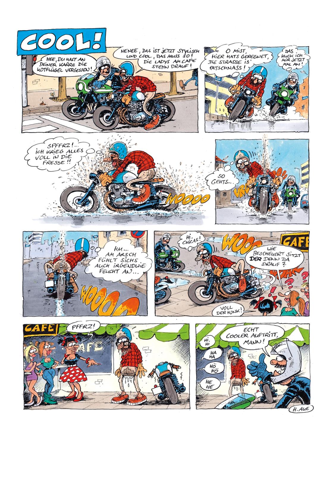 BROOOOMM!! Endlich ist er da, der neue MOTOmania Band 15! Es gibt wieder viel zu erleben mit Holli Hatzenbach und seine Mopped-Kumpels. Egal ob auf oder neben der Rennstrecke, dieser 56-seitige Comicband mit den neuesten Geschichten der Saison ist wieder mal ein Riesenspaß für alle, die neben Blut auch Benzin in den Adern haben.