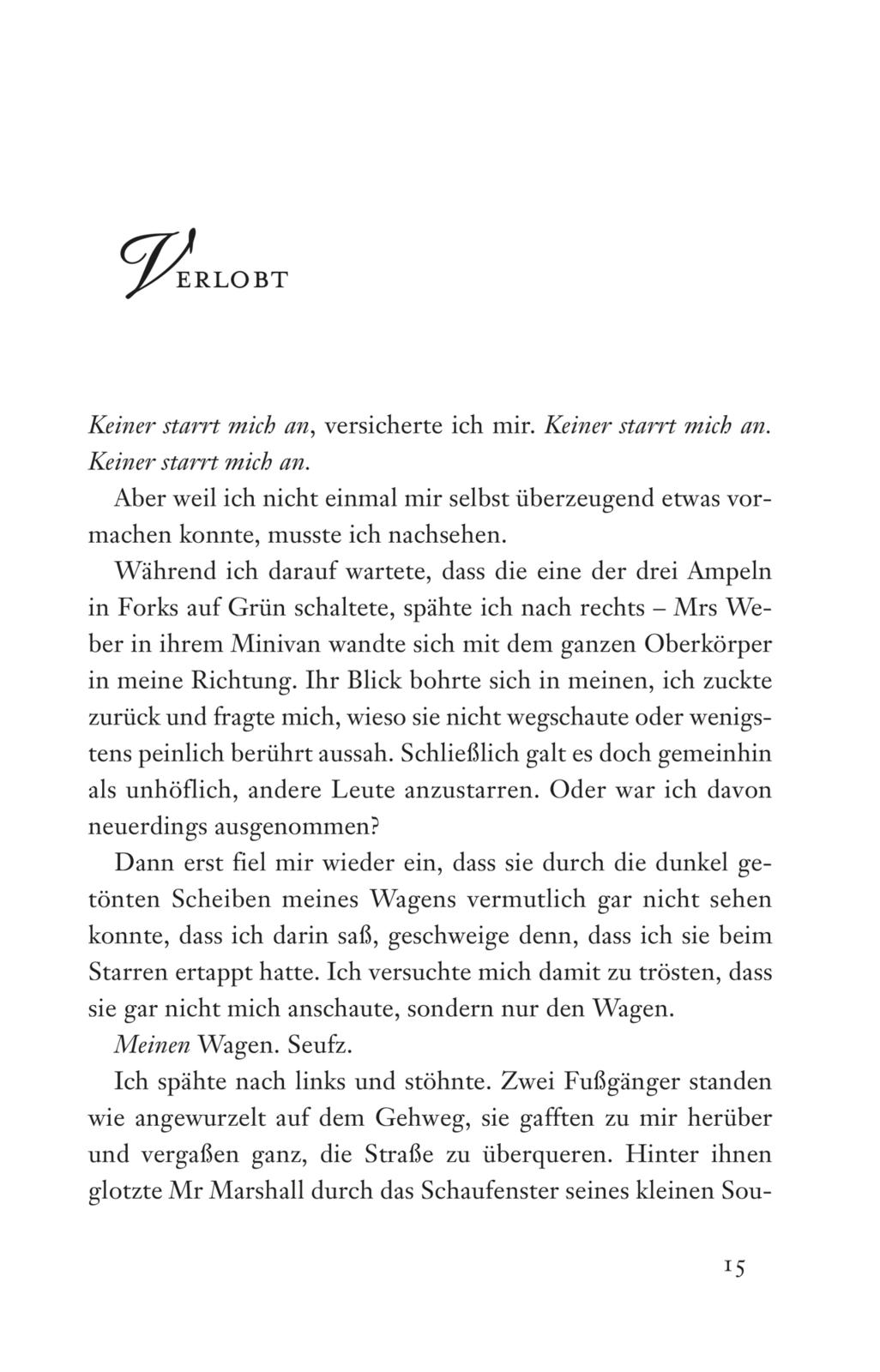 Als die 17-jährige Bella Swan aus dem sonnigen Phoenix ins regnerische Forks zieht, erwartet sie wenig von der beschaulichen Kleinstadt. Doch dann trifft sie Edward Cullen, einen Mitschüler mit faszinierend blassen Augen und einer Aura, die Bella sofort in ihren Bann zieht. Edward ist geheimnisvoll, zurückhaltend, unglaublich attraktiv - und ein Vampir! Bella kann nicht anders: Sie fühlt sich trotz - oder vielleicht gerade wegen - seiner dunklen Geheimnisse zu ihm hingezogen. Doch was bedeutet es, als Mensch einen Vampir zu lieben?
