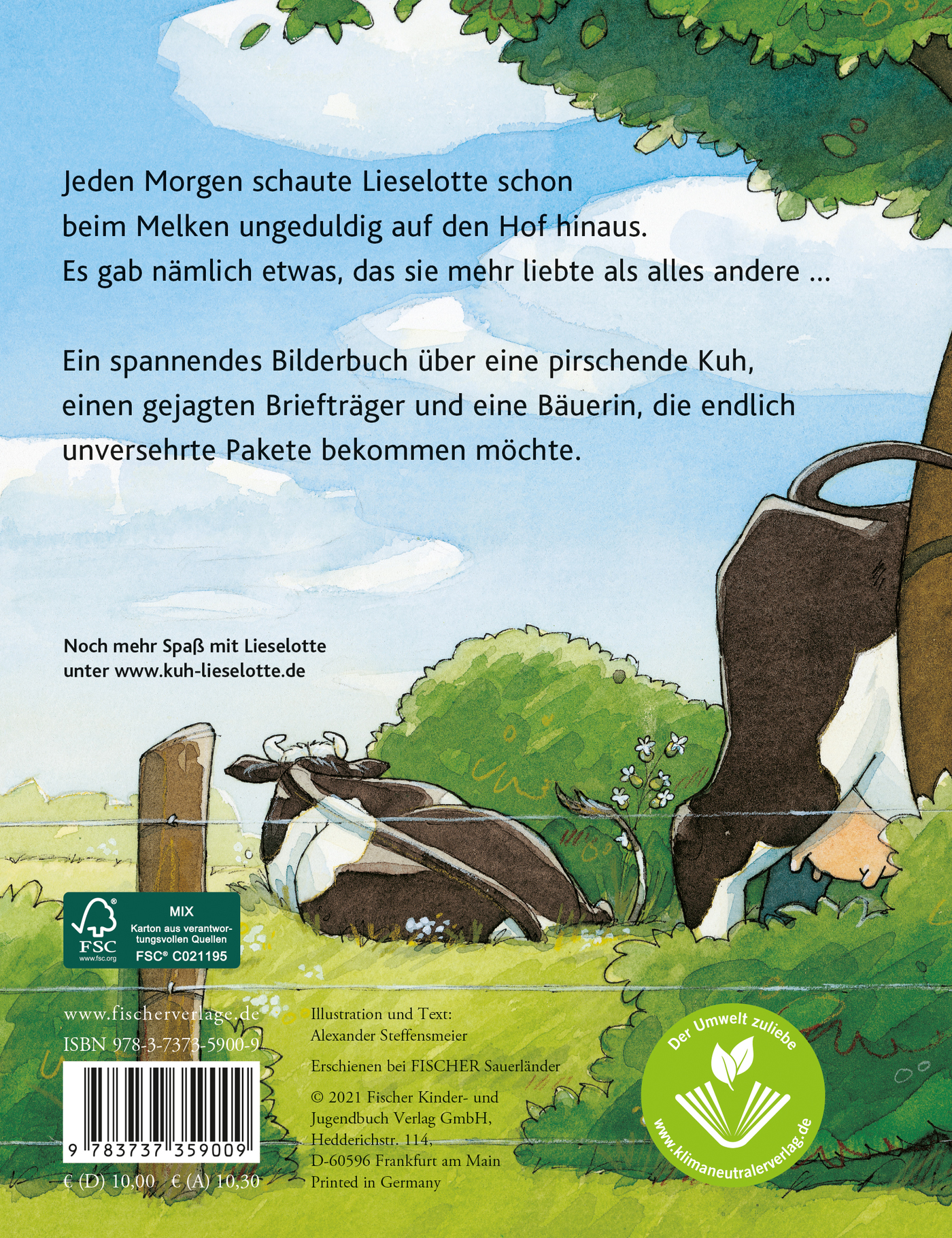Die Kuh Lieselotte ist eigentlich ganz friedlich. Nur auf den Postboten hat sie es abgesehen. Nichts liebt sie mehr, als ihm aufzulauern. Der arme Kerl hat schon Albträume. Auch die Bäuerin ist wütend. Jedes Paket, das sie bekommt, ist kaputt, weil der Postbote alles fallen lässt, wenn Lieselotte ihn erschreckt. So geht das nicht weiter. Da hat der Postbote eine Idee ...