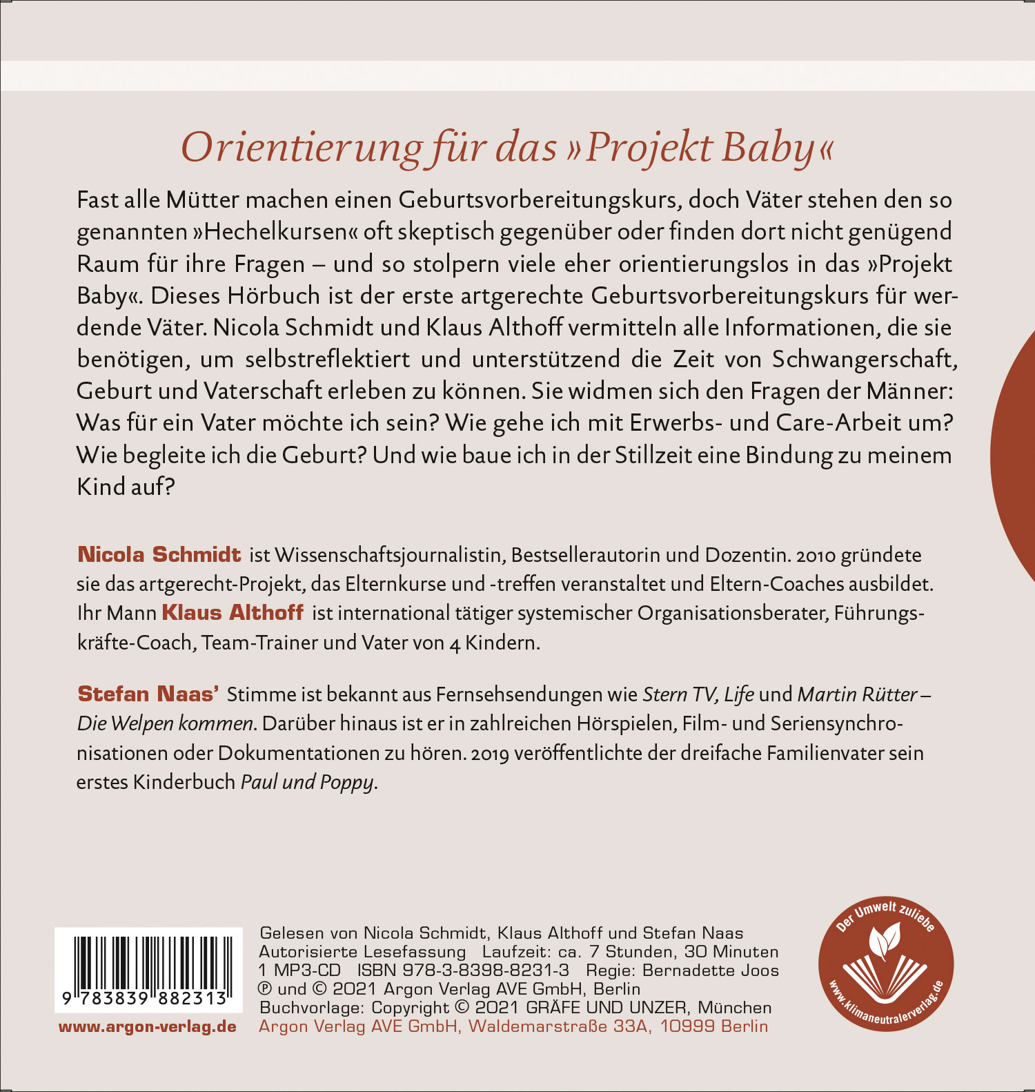 Dieses Hörbuch ist der erste artgerechte Geburtsvorbereitungskurs für werdende Väter. Nicola Schmidt und Klaus Althoff vermitteln alle Informationen, die Sie benötigen, um selbstreflektiert und unterstützend die Zeit von Schwangerschaft, Geburt und Vaterschaft erleben zu können.