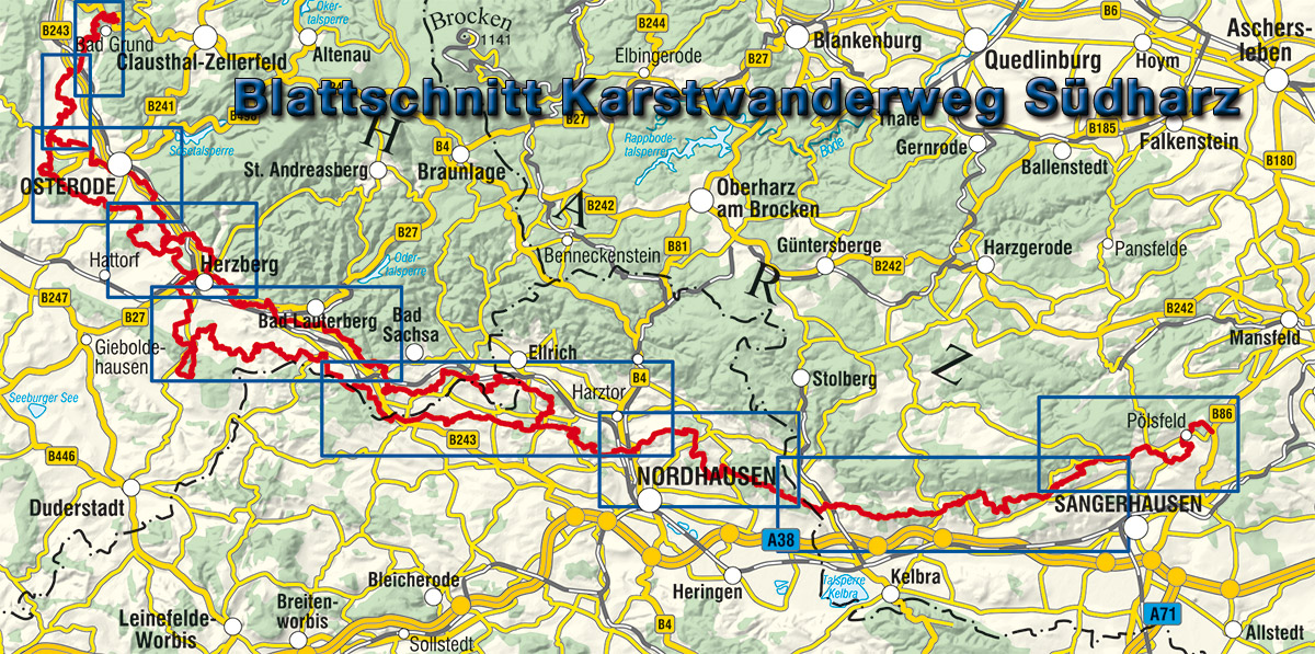 Von Bad Grund in Niedersachsen bis Pölsfeld in der Nähe von Sangerhausen in Sachsen-Anhalt reihen sich am südlichen Harzrand Karsterscheinungen perlschnurartig aneinander. Höhlen, Erdfälle und Dolinen, Karstquellen, Bachschwinden und Flussversinkungen, Karstkegel, Schlotten, geologische Orgeln, Felsen und weiße Wände gehen auf die gesteinsauflösende Wirkung des Wassers zurück, gebildet aus dem Gips des Südharzes. Der Karstwanderweg erschließt mit einer Länge von 248 km diese einzigartige Naturlandschaft.Der Karstwanderweg ist seit 2011 "Qualitätsweg Wanderbares Deutschland". Er ist damit zusammen mit dem Harzer Hexen-Stieg der zweite zertifizierte Wanderweg im Harz. Aber auch der Einzige, der mit Niedersachsen, Thüringen und Sachsen-Anhalt durch alle drei Bundesländer des Harzes führt.Der Karstwanderweg berührt geschützte Natur- und Kulturdenkmale und quert Naturschutzgebiete. Er soll über die ökologischen Zusammenhänge in der Natur des Südharzes aufklären.In enger Zusammenarbeit mit der Arbeitsgruppe Karstwanderweg wurde die 3. Ausgabe des Wanderleporello "Karstwanderweg im Südharz" überarbeitet und neu veröffentlicht. Das ca. 2,70 m lange zieharmonikaartige auf Taschenformat gefaltete Leporello stellt den gesamten Karstwanderweg von Sangerhausen bis Osterode vor.Für die auf der Karte angebrachte Kilometrierung wurde Pölsfeld als Startpunkt angenommen. In Gudersleben teilt sich der Karstwanderweg und führt auf einer Südroute über Pöhlde nach Förste und dann auf einer Nordroute über Osterode wieder zurück nach Gudersleben. Zusätzlich wurde die Anbindung des Karstwanderweges vom HöhlenErlebnisZentrum in Bad Grund nach Förste in die Kartographie aufgenommen. Auf eine Einteilung des Karstwanderweges in Etappen wurde verzichtet. Der Karstwanderweg kann aus beiden Richtungen erkundet werden. Zusätzlich wurden die Rundwanderwege am Karstwanderweg dargestellt die eine Unterteilung des Weges in kleinere Rundtouren ermöglicht. Weiterhin erläutert die vorliegende Publikation die geologischen Besonderheiten des Karstwanderweges mit Text und Bild.