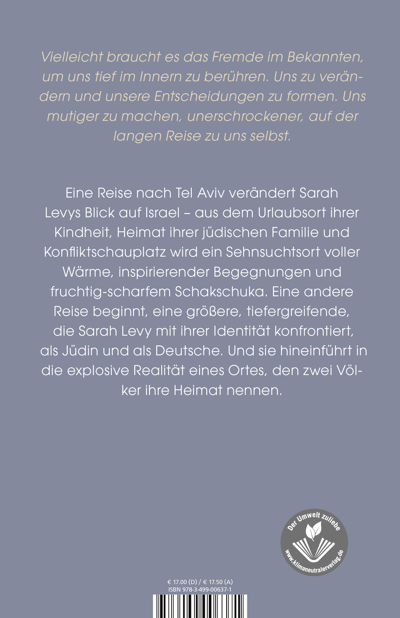 Sarah Levy, geboren 1985, wuchs in Deutschland mit jüdischen und nicht-jüdischen Großeltern auf; 2019 wanderte sie nach Israel aus und schrieb darüber ihr erstes Buch «Fünf Wörter für Sehnsucht». Sie besuchte die Henri-Nannen-Journalistenschule und arbeitet als freie Journalistin. Seit 2018 koordiniert sie das Projekt stopantisemitismus.de und arbeitet für diverse Bildungsinitiativen. Sie lebt mit ihrer Familie in der Nähe von Tel Aviv.
