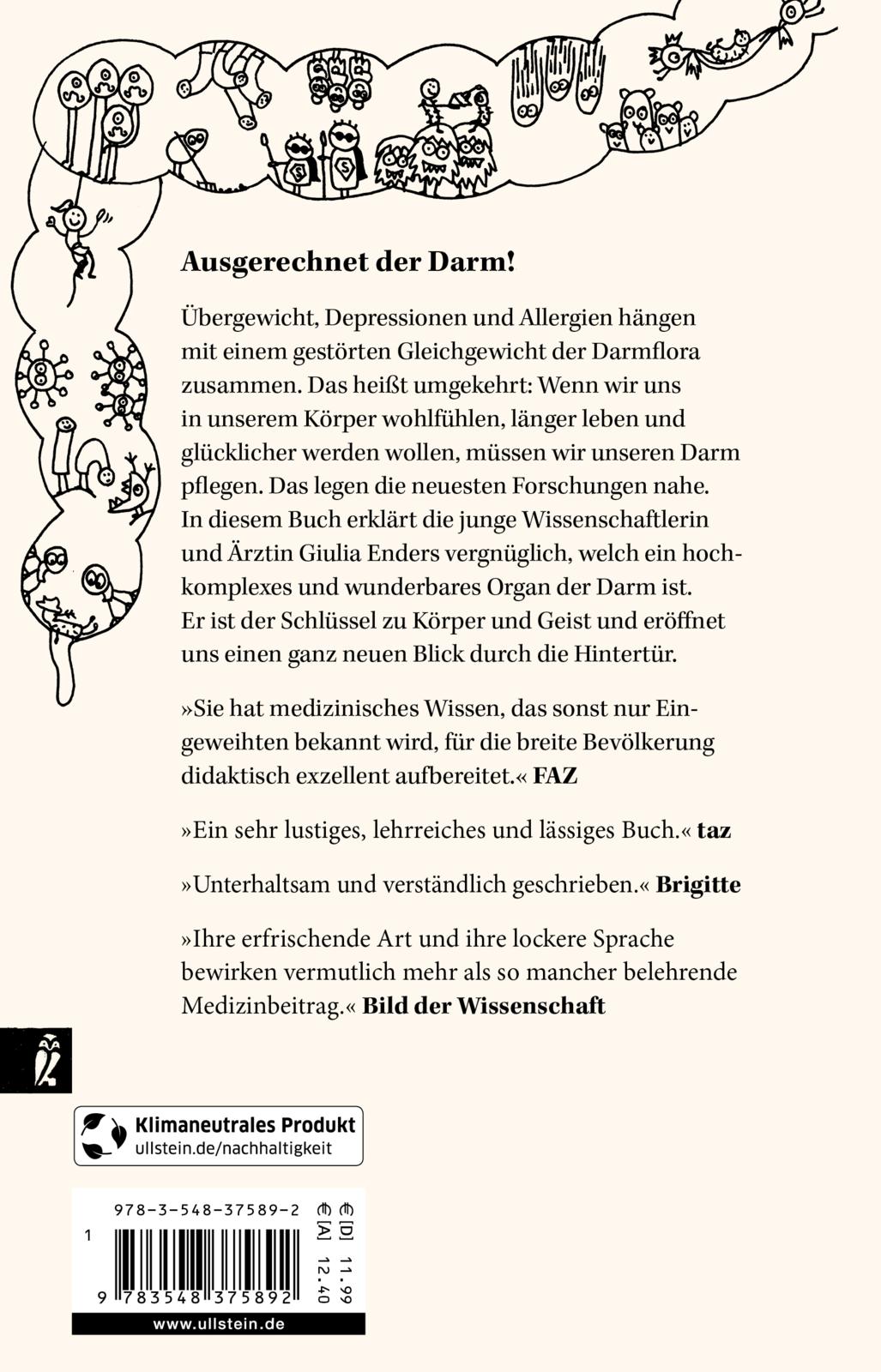Ausgerechnet der Darm! Das schwarze Schaf unter den Organen, das einem doch bisher eher unangenehm war. Aber dieses Image wird sich ändern. Denn Übergewicht, Depressionen und Allergien hängen mit einem gestörten Gleichgewicht der Darmflora zusammen. Das heißt umgekehrt: Wenn wir uns in unserem Körper wohl fühlen, gesünder altern und glücklicher werden wollen, müssen wir unseren Darm pflegen. Das zumindest legen die neuesten Forschungen nahe. In diesem Buch erklärt die junge Wissenschaftlerin Giulia Enders vergnüglich, welch ein hochkomplexes und wunderbares Organ der Darm ist. Er ist der Schlüssel zu Körper und Geist und eröffnet uns einen ganz neuen Blick durch die Hintertür.