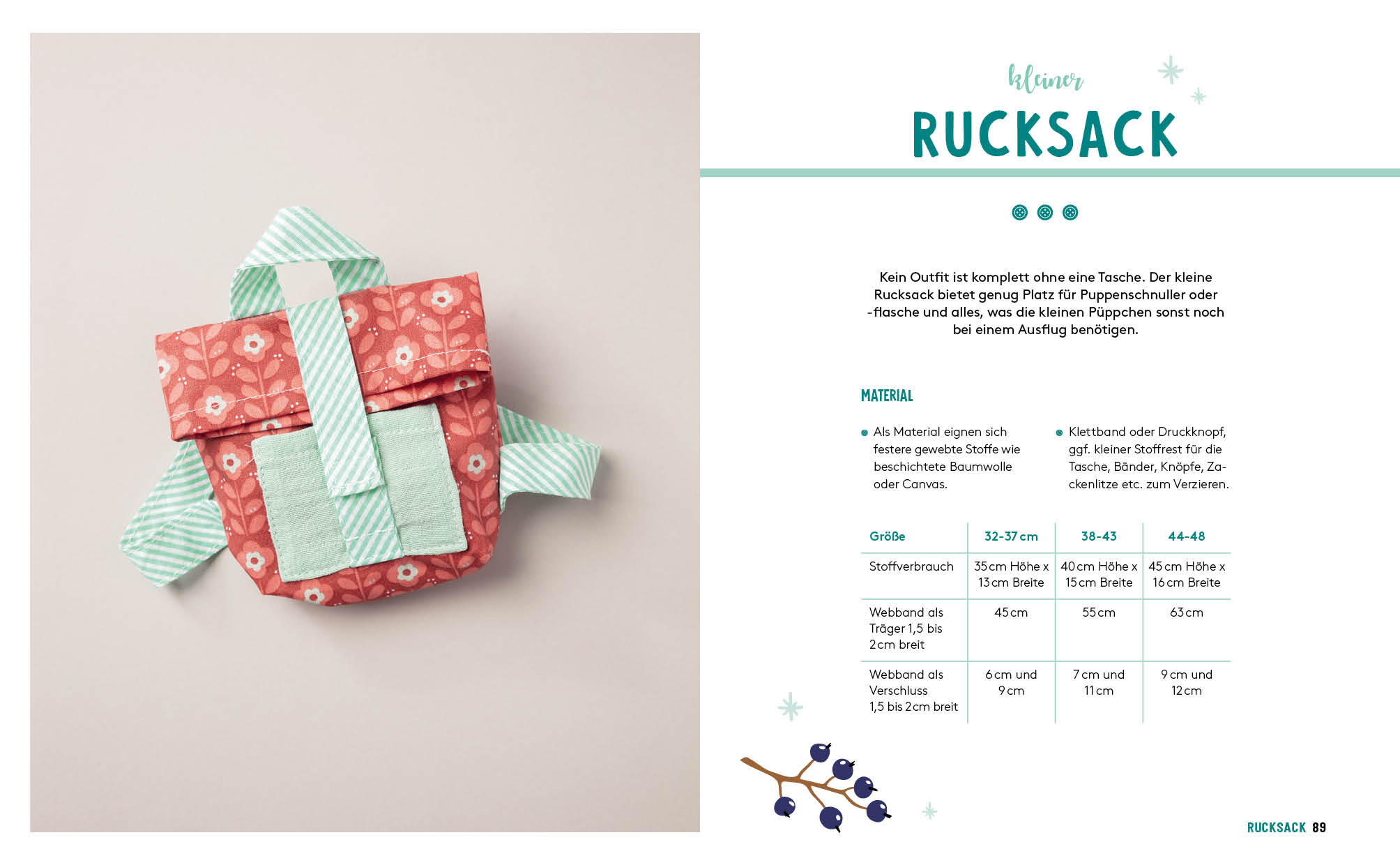 Du möchtest der Lieblingspuppe einer kleinen Puppenmama ein stylisches Outfit nähen und bist auf der Suche nach hübschen und einfach zu nähenden Schnitten? Die niedlichen Kleidungsstücke lassen sich dank 3 verschiedener Schnittgrößen und Änderungsanleitung ganz leicht an individuelle Puppengrößen anpassen. Mit den süßen Nähprojekten ist die kleine Spielgefährtin bestens für alle Eventualitäten des Puppenalltags ausgestattet.