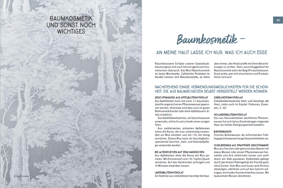 | Schlagworte | Ahorn • Ahornbaum • Apfelbaum • Asperl • Balsampappel • Baumapotheke • Baumasche • Baumkosmetik • Baumsäfte • Birke • Buche • Edelkastanie • Eiche • Elsbeere • Erle • Esche • Essenzen • Fasten • Fastenkost • Fichte • Harz • Hasel • Hydrolat • kochen mit bäumen • Lärche • Laubbäume • Linde • Maronibaum • Mehlbeere • Nadelbäume • Naturheilkunde • Naturschutz • Oxymel • Räuchern • Sanddorn • Schlehe • Schwarzer Holunder • Schwarzpappel • Speiselaubbaum • Tanne • Tinkturen • Ulme • Vogelbeere • Zirbe • zirbelkiefer • Zitterpappel |