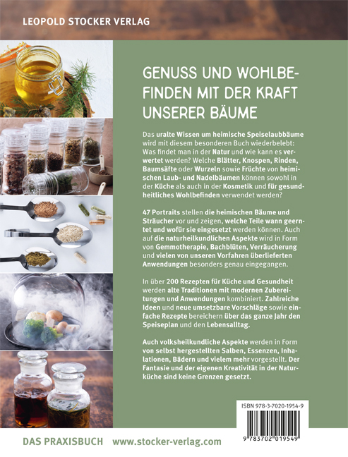 Das uralte Wissen um heimische Speiselaubbäume wird mit diesem besonderen Buch wiederbelebt: Was findet man in der Natur und wie kann es verwertet werden? Welche Blätter, Knospen, Rinden, Baumsäfte oder Wurzeln sowie Früchte von heimischen Laub- und Nadelbäumen können sowohl in der Küche als auch in der Kosmetik und für gesundheitliches Wohlbefinden verwendet werden? Werden sie zubereitet oder roh genossen? Worauf muss geachtet werden?