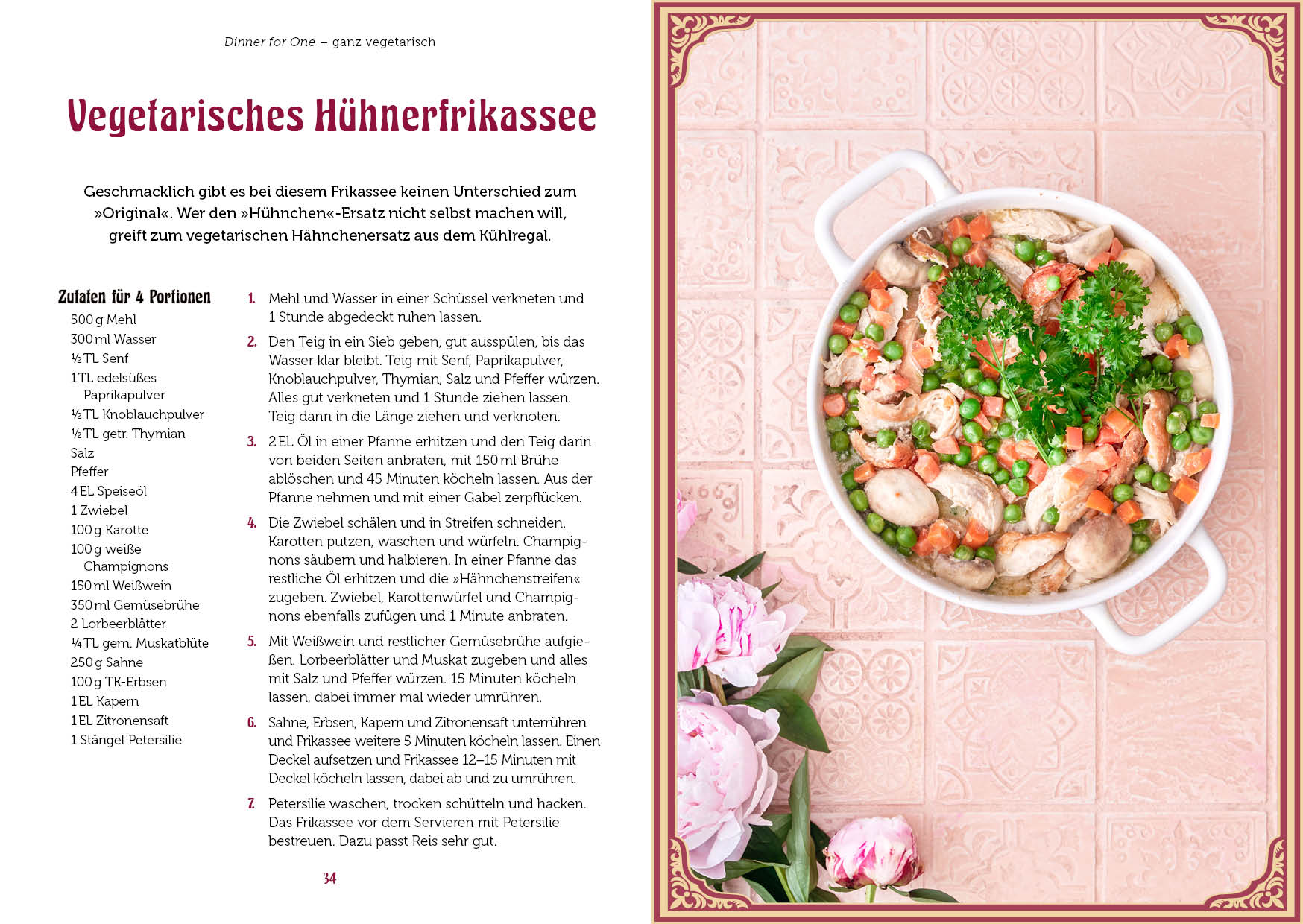 Dinner for One ist einfach Kult. Jahr für Jahr tischt Butler James seiner Miss Sophie und ihren imaginären Gästen einen Gang nach dem anderen auf, wird dabei immer betrunkener und stolpert ungezählte Male über den Tigerkopf. Die servierten Gerichte können Sie mit diesem Kochbuch für Ihre eigene Silvesterparty nachkochen. Neben Mulligatawny-Suppe, Fisch, Hühnchen und Obstsalat, die im Sketch aufgetischt werden, gibt es weitere Menüvarianten und natürlich Snacks, die die Wartezeit auf die Ausstrahlung von Dinner for One versüßen. Der perfekte Begleiter für einen unvergesslichen Start ins neue Jahr!