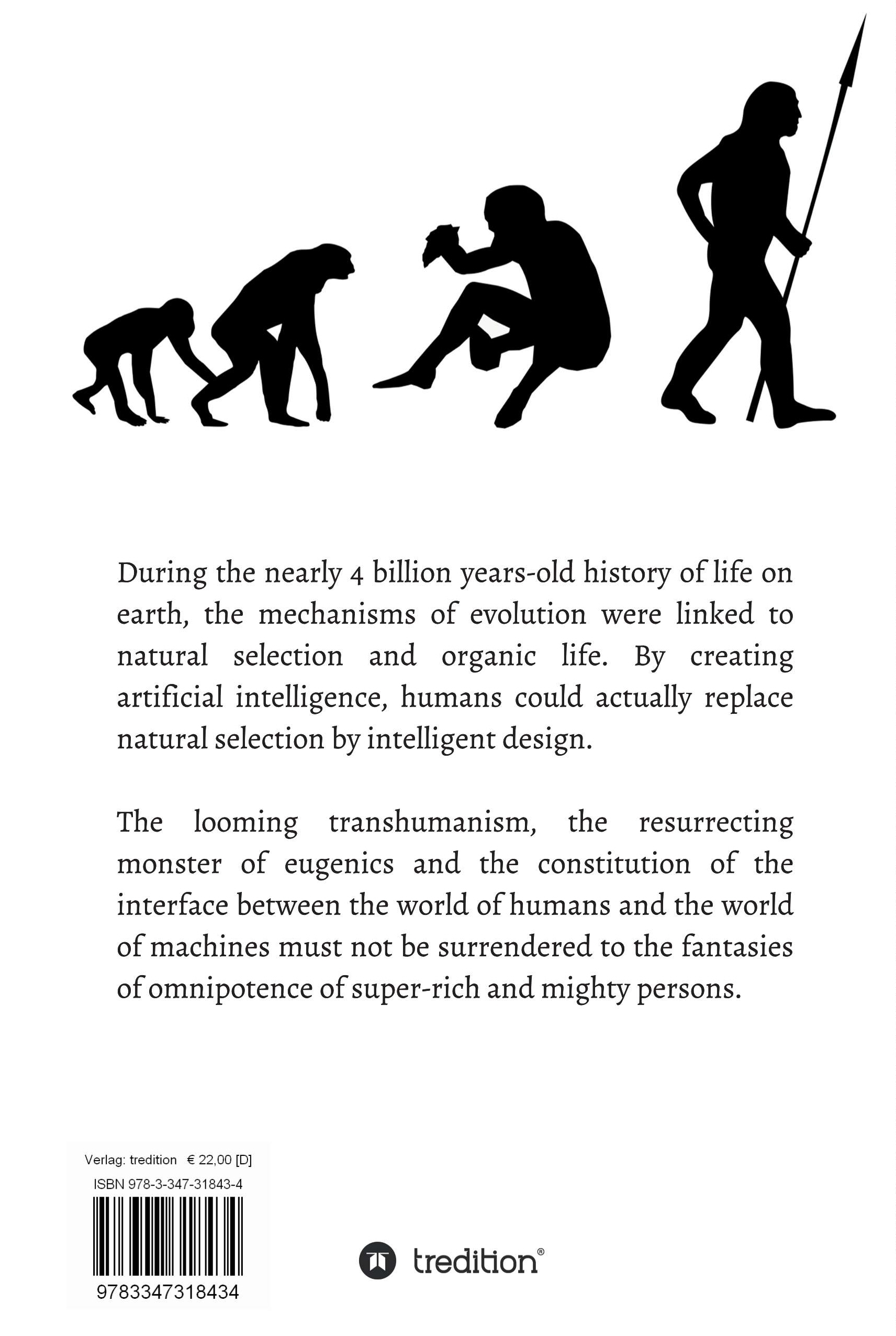 During the nearly 4 billion years-old history of life on earth, the mechanisms of evolution were linked to natural selection and organic life. By creating artificial intelligence, humans could actually replace natural selection by intelligent design.The looming transhumanism, the resurrecting monster of eugenics and the constitution of the interface between the world of humans and the world of machines must not be surrendered to the fantasies of omnipotence of super-rich and mighty persons.