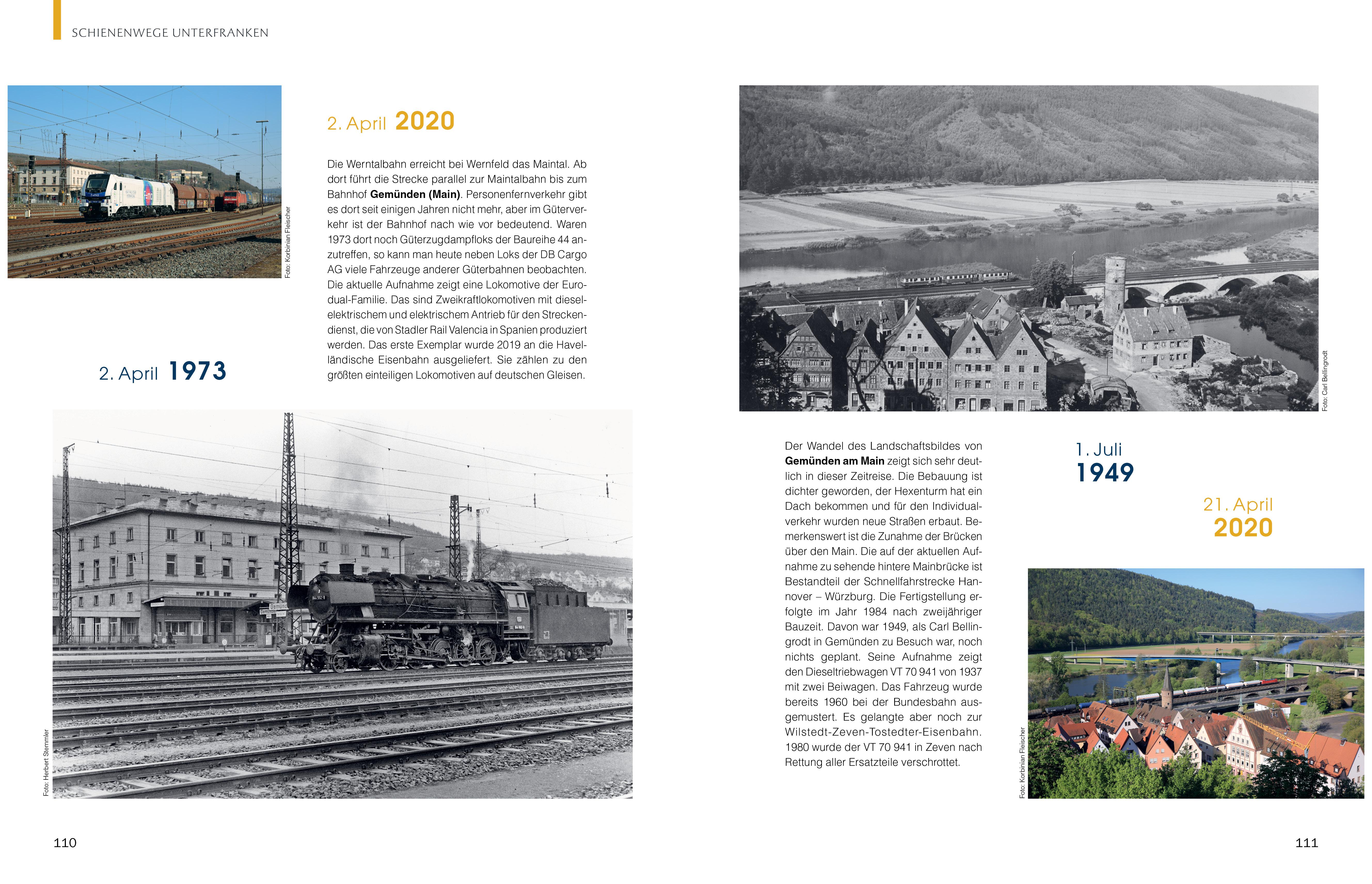 Die Buchreihe Schienenwege gestern & heutewidmet sich in diesem Band Unterfranken. Die Veränderungen rund um die Eisenbahn werden in rund 120 direkten Bildvergleichen mit begleitenden Texten sehr deutlich. Zwischen Aschaffenburg im Westen, Mellrichstadt im Osten und Jossa im Norden und Kitzingen im Süden hat sich die Eisenbahn sehr verändert. Entweder sie ist komplett verschwunden oder umfassend modernisiert worden.