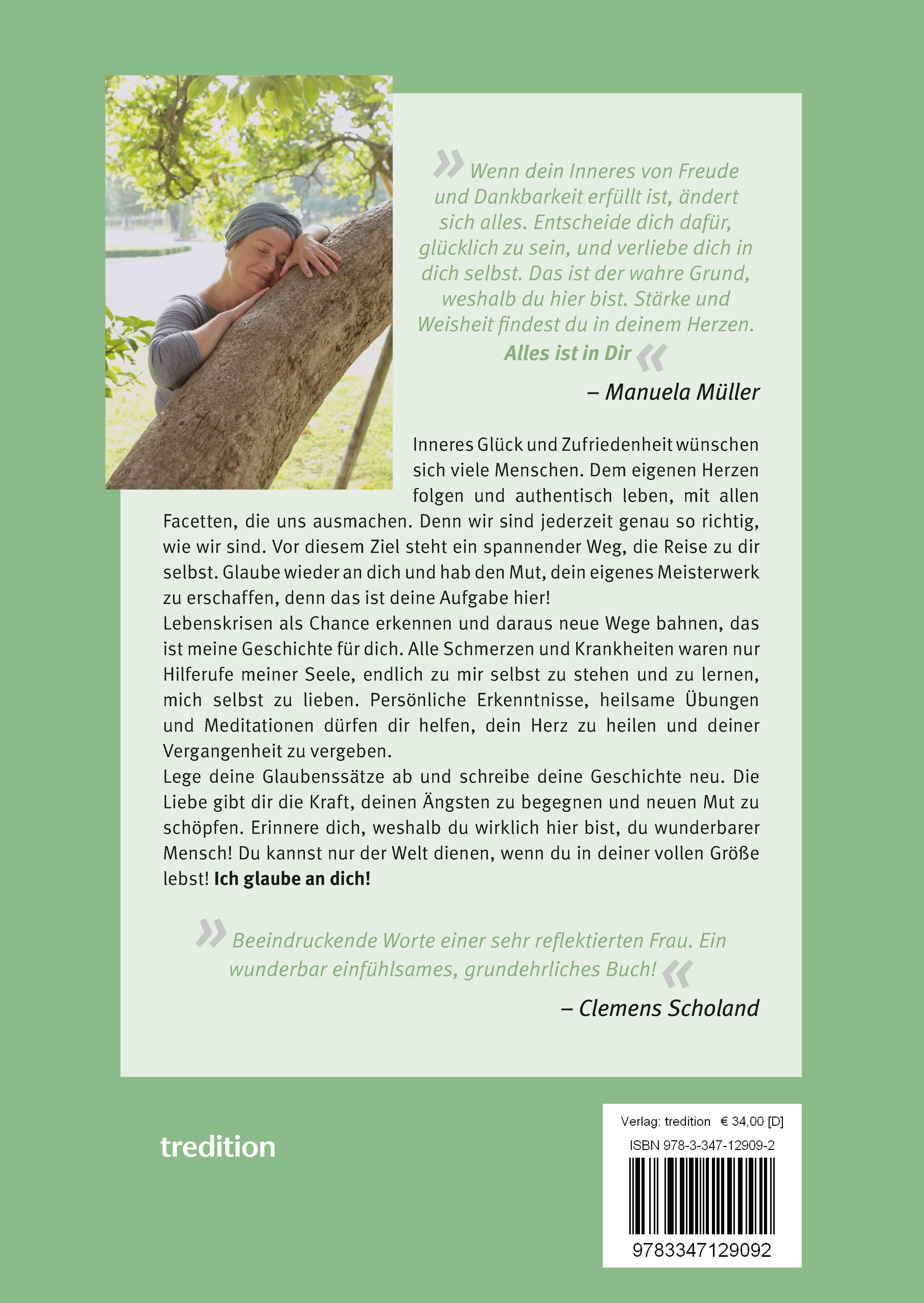 Manuela Müller (Jahrgang 1973) arbeitete nach ihrem Fachschulstudium zur staatlich anerkannten Erzieherin einige Jahre in diesem Berufsfeld. Nach ihrer Ehescheidung stellte sie sich beruflich auf eigene Beine und ging mit ihrer zweijährigen Tochter nach Thüringen. Viele Jahre führte sie sehr erfolgreich ein mittelständisches Unternehmen und verlor sich durch zu viel Stress und Verantwortung dabei selbst. Durch einen Burn-out erkannte sie die Chance, neue Wege zu gehen und ihrem Herzensweg zu folgen. Seit vielen Jahren beschäftigt sie sich ausführlich mit den Themen Persönlichkeitsentwicklung, Achtsamkeit und Spiritualität. Sie spricht Kindergeschichten für einen thüringischen Radiosender und schreibt selbst welche. Manuela Müller hat sich zum Achtsamkeitscoach – und Rhetoriktrainer ausbilden lassen und lehrt in Kursen die Meditationspraxis und andere Entspannungstechniken. Sie begleitet Menschen mit Enthusiasmus und Authentizität, in ihre volle Größe und Sichtbarkeit zu gelangen und ihr Leben in Selbstverantwortung und Freude zu gestalten. Ihr Herz schlägt für ein liebevolles Miteinander und ein neues Wir - Gefühl! Ihr herzerfrischendes Wesen macht Mut. Sie schreibt und vertont Meditationen und arbeitet an weiteren Hörbuchproduktionen. Kreativität, Musik und Fotografieren sind ihre größten Talente. Sie liebt Bücher und das Schreiben, den Sport und alles Bewegte in der Natur.