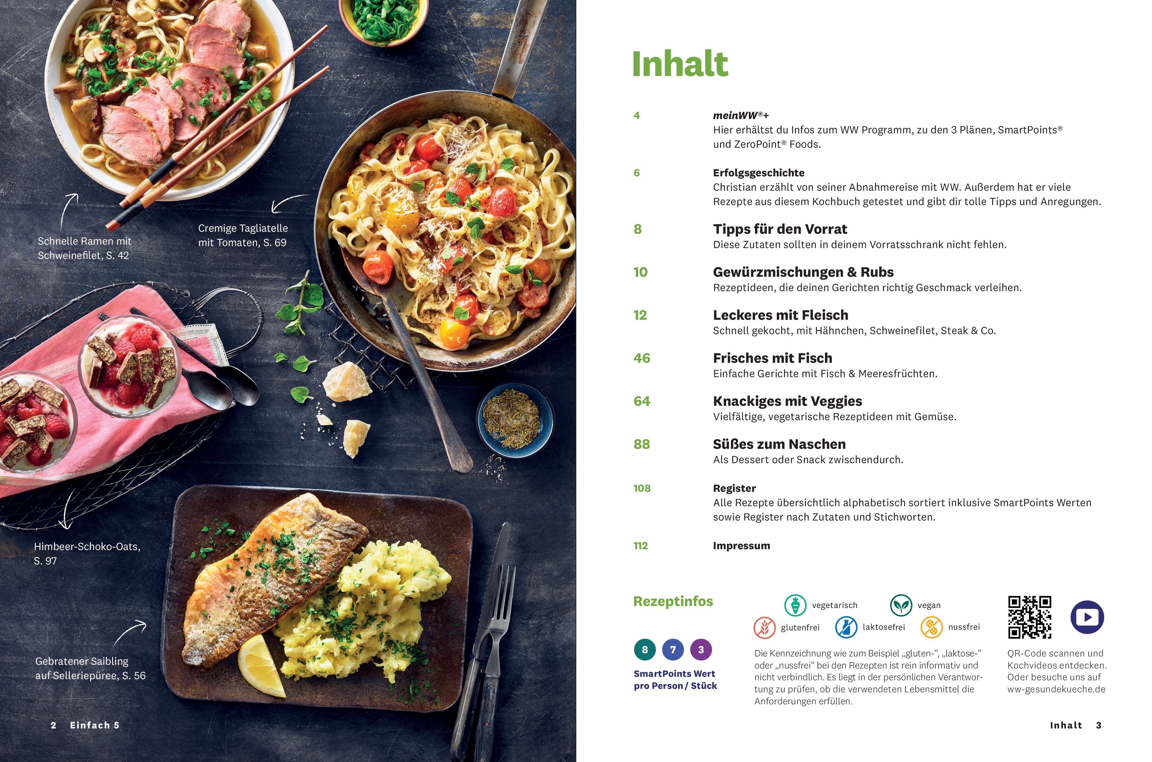 Auch mit wenigen Zutaten kann schnell ein leckeres Gericht gezaubert werden, das obendrein noch gesund ist. Das Weight Watchers Kochbuch "Einfach 5" zeigt, wie es geht. Denn hier enthält jedes Rezept nur 5 Hauptzutaten.