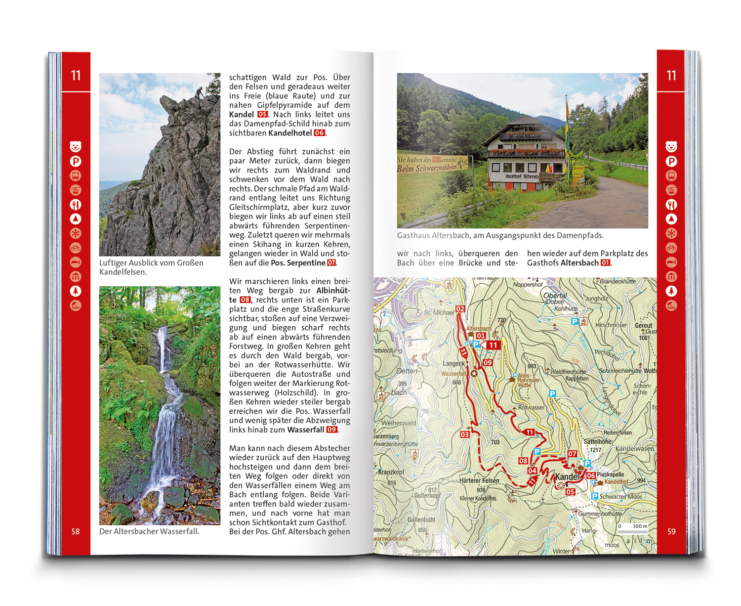 - Der wandertouristischen Erschließung des Südschwarzwalds, die sich in Tourennamen wie "Höfetour", "Hirten- oder Geißenpfad", "Mühlentour" und "Drei-Schluchten-Wanderung" ausdrückt, wird in diesem Führer mit der Berücksichtigung einer Vielzahl von speziellen Themenwegen Rechnung getragen.