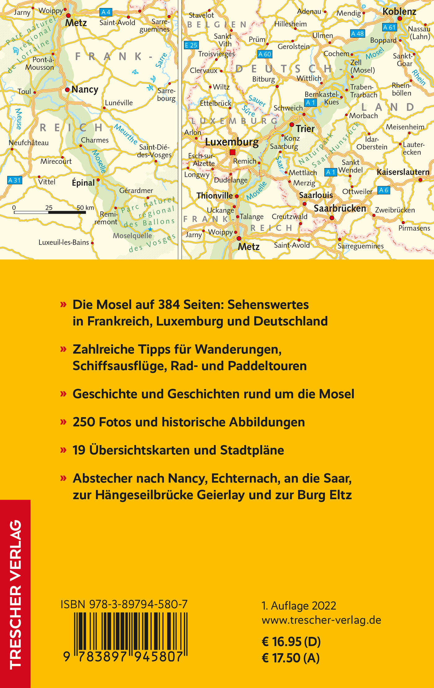 | Schlagworte | Bernkastel-Kues • Bitburg • Cochem • Deutsches Eck • Dreiländer-Mosel • Eifel • Épinal • Frankreich • Französische Mosel • Gerolstein • Hunsrück • Luxemburg • Metz • Mosel-Camino • Moselhöhenweg • Moselquelle • Mosel-Radweg • Moselschleife • Moselsteig • Moseltal • Moselwein • Nancy • Porta Nigra • Reisetipps • Rheinland-Pfalz • Rhein-Mosel-Land • Schengen • Sehenswürdigkeiten • Traben-Trarbach • Trescher-Reiseführer • Trescher Verlag • Trier • Unterkunft • Weinreise • Zeller Land |