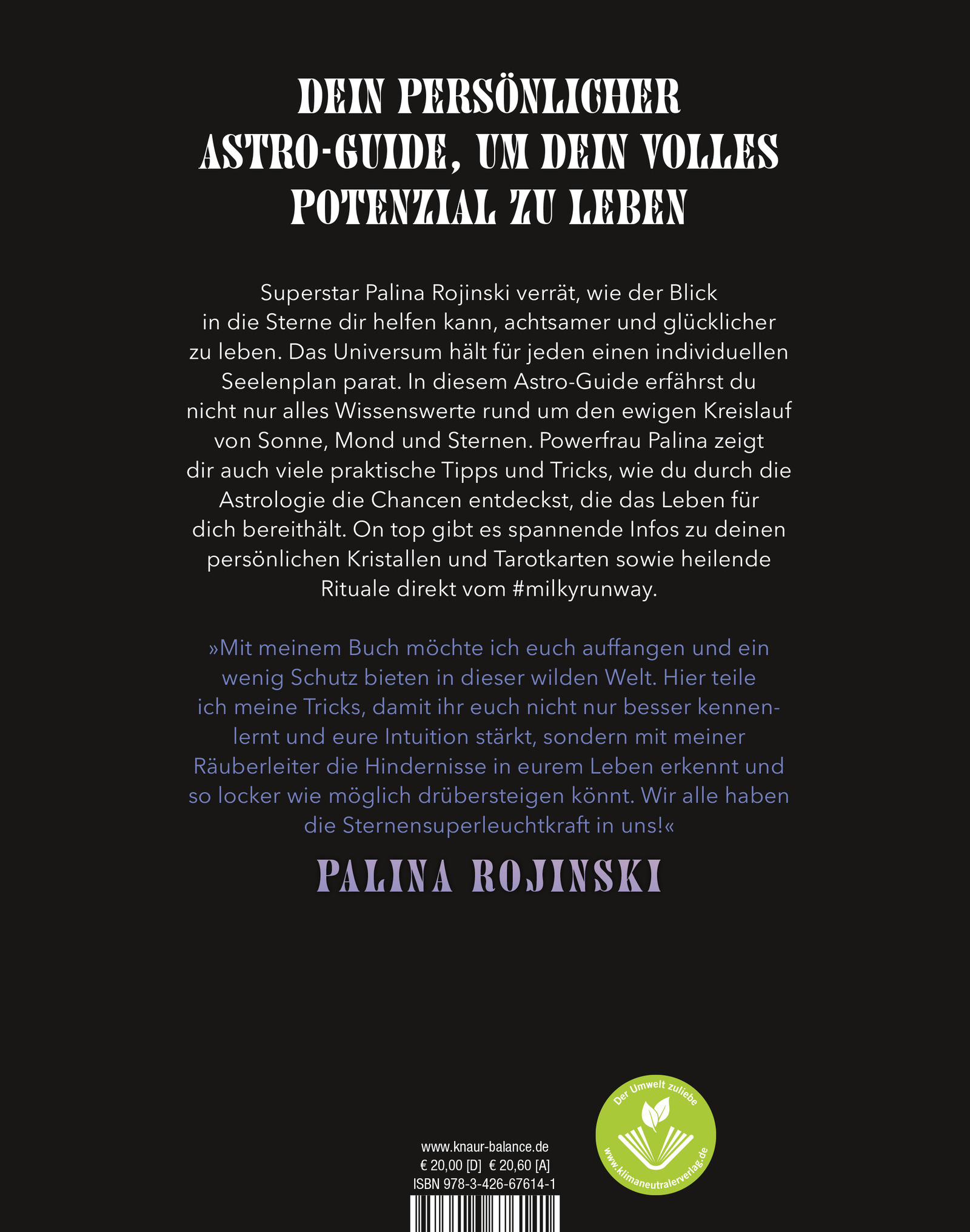 In ihren Astrolinski-Videos begeistert TV-Star Palina Rojinski Tausende von Menschen mit ihrem Wissen zur Astrologie, zu den Naturgesetzen und dem ewigen Kreislauf von Sonne, Mond und Sternen. Jetzt schreibt die beliebte Schauspielerin erstmals über ihre Leidenschaft für Astrologie – denn der Blick in die Sterne schenkt uns zahlreiche Chancen. Wir müssen nur nach ihnen greifen. Mit vielen praktischen Tipps und Tricks zeigt Powerfrau Palina, wie jede*r passend zu seinem eigenen Sternzeichen sein volles Potenzial entdecken und nutzen kann. Dieser liebevoll illustrierte Ratgeber zeigt, dass Astrologie mehr als ein Trend ist – sie kann echte Lebenshilfe sein.