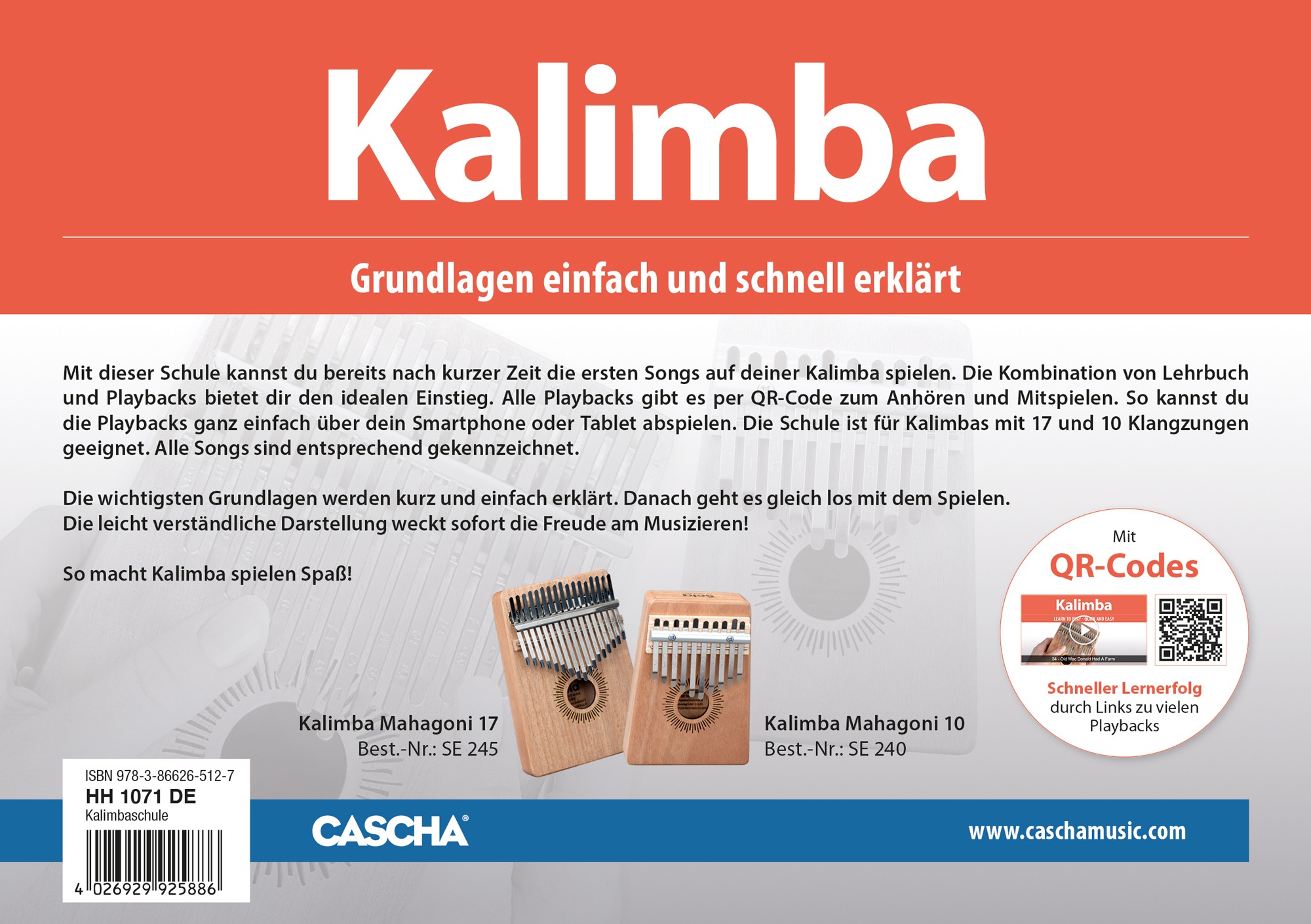 Mit dieser Schule kannst du bereits nach kurzer Zeit die ersten Songs auf deiner Kalimba spielen. Die Kombination von Lehrbuch und Playbacks bietet dir den idealen Einstieg. Alle Playbacks gibt es per QR-Code zum Anhören und Mitspielen. So kannst du die Playbacks ganz einfach über dein Smartphone oder Tablet abspielen. Die Schule ist für Kalimbas mit 17 und 10 Klangzungen geeignet. Alle Songs sind entsprechend gekennzeichnet.Die wichtigsten Grundlagen werden kurz und einfach erklärt. Danach geht es gleich los mit dem Spielen. Die leicht verständliche Darstellung weckt sofort die Freude am Musizieren!So macht Kalimba spielen Spaß!