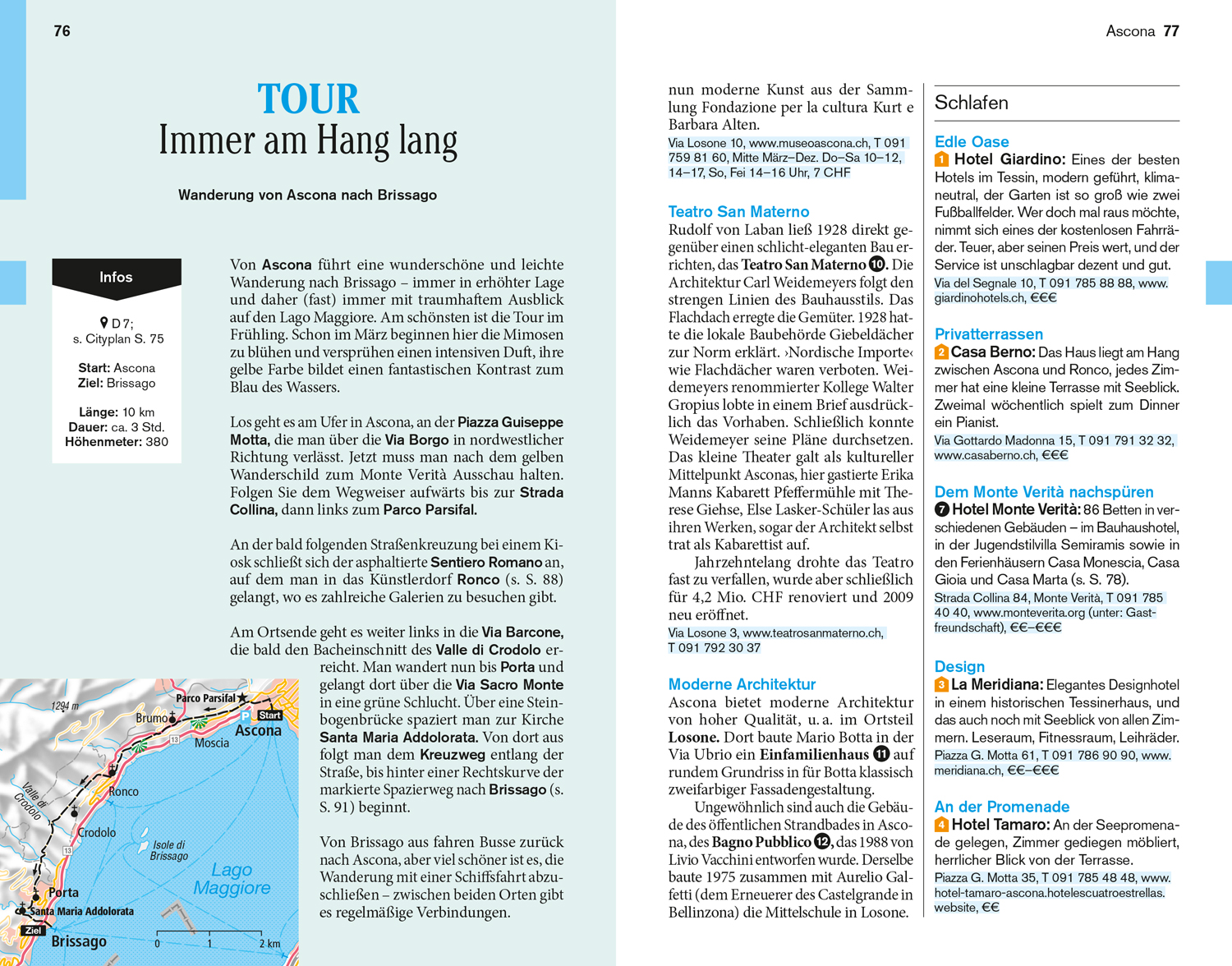 - Die Karten: 5 Citypläne und zahlreiche Tourenkarten, eine Übersichtskarte mit den Highlights des Tessin, Schnellüberblicke zu jeder Region plus eine große Reisekarte