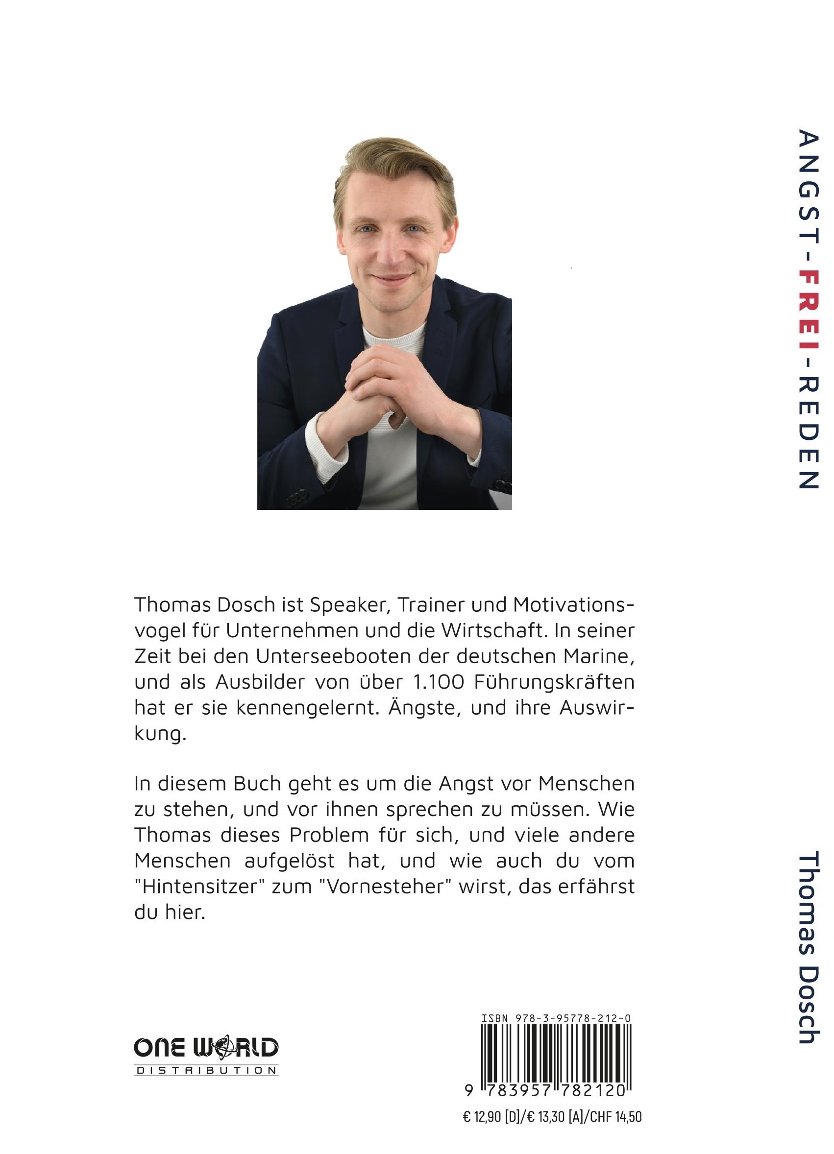 Wer ist Thomas Dosch? Thomas Dosch wurde 1990 in München geboren. Im oberbayrischen Oberhaching aufgewachsen lernte er bereits früh wozu Ängste die Menschen treiben können. Unsicherheit war im finanziellen, psychischen und auch physischen Verständnis der Begleiter seiner Kindheit und Jugend. Bereits im Alter von 7 Jahren beschäftigte er sich mit der Frage: „Warum tun Menschen, die sich doch lieben, gegenseitig weh? Nach dem qualifizierten Hauptschulabschluss begann er im Jahr 2006 seine Lehre zum KFZ- Mechatroniker. Diese war auch dringend notwendig, hatte er sich doch, bereits im Alter von 13 Jahren, in den Kopf gesetzt U-Bootfahrer werden zu wollen. In diesem Zeitraum erlangt er ebenfalls, durch den Besuch einer Abendschule parallel zur Ausbildung, die mittlere Reife und das englische Fremdsprachenzertifikat des Freistaates Bayern. Im Jahr 2010 trat er, mit gerade einmal 19 Jahren, seinen Dienst bei der deutschen Marine an, wofür er seine bayrische Heimat verlies und 1000 km in den Norden Deutschlands zog. Im Alter von 23 Jahren machte er eine der wichtigsten Erfahrungen seines Lebens- unter Angst zu versagen. Ein Alarmsignal ertönte, als er während einer Seefahrt gerade auf seiner Koje lag. Auf einem Unterseeboot, 250 Meter unter der Meeresoberfläche. Zum ersten Mal war es seine Aufgabe die Rolle des Leiters der Schadensabwehr zu übernehmen. Durch verhängnisvolle Fehlentscheidungen, getroffen aus einem Zustand der Angst, hätten in dieser Nacht er und 27 weitere Männer und Frauen den Tod in der Tiefe gefunden, wäre es keine Übung gewesen. An diesem Tag traf er die wichtigste Entscheidung seines Lebens- sich nie wieder von Ängsten beherrschen zu lassen. Dies war die Geburtsstunde des von ihm erstellten VIA- Prozesses, den er nach hunderten Vorträgen, Büchern und wissenschaftlichen Arbeiten entwickelte. Nach dem Erwerb der Hochschulreife wurde er im Jahr 2015 Ausbilder an der Marineunteroffizierschule, wo er bereits nach kurzer Zeit zum Ausbildungsleiter seines Fachbereiches für seine Ausbildungseinheit, und später für die gesamte Einrichtung, aufstieg. In dieser Zeit bildete er über 1.100 zukünftige Führungskräfte für die deutsche Marine aus. Während dieser Zeit wurde sein Umgang mit der Angst nochmals auf eine harte Probe gestellt, als er im Alleingang Randalierer an einer örtlichen Tankstelle überwältigte, und bis zum Eintreffen der Polizei festsetzte. Hierfür wurde ihm 2017 eine der höchsten militärischen Auszeichnungen, das Ehrenkreuz der Bundeswehr der Sonderstufe Silber verliehen. Neben dem Studium der Wirtschaftspsychologie, zu dem er sich 2020 entschied, bildet er sich kontinuierlich auf Seminaren und Kongressen seiner Fachexpertise weiter. 2021 veröffentlichte er mit Angst-FREI- Reden sein erstes Buch. Seit 2019 schult Thomas Dosch die Führungsspitzen der Unternehmen im gesamten deutschsprachigen Raum, zu denen unter anderem Start-ups, weltweit agierende Finanzdienstleister, wie auch die deutschen Automobilhersteller gehören. Er ist Deutschlands erster und einziger Angstlöser.