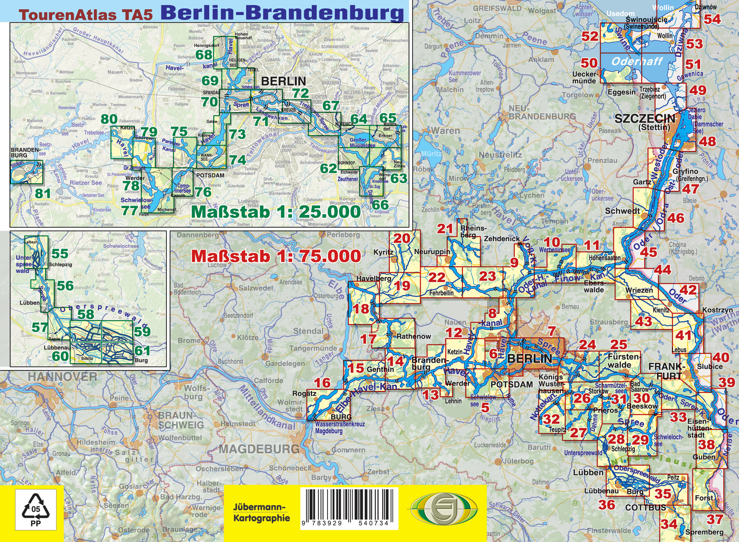 Maßstab 1: 75 000, Spreewald und Berlin 1: 25 000