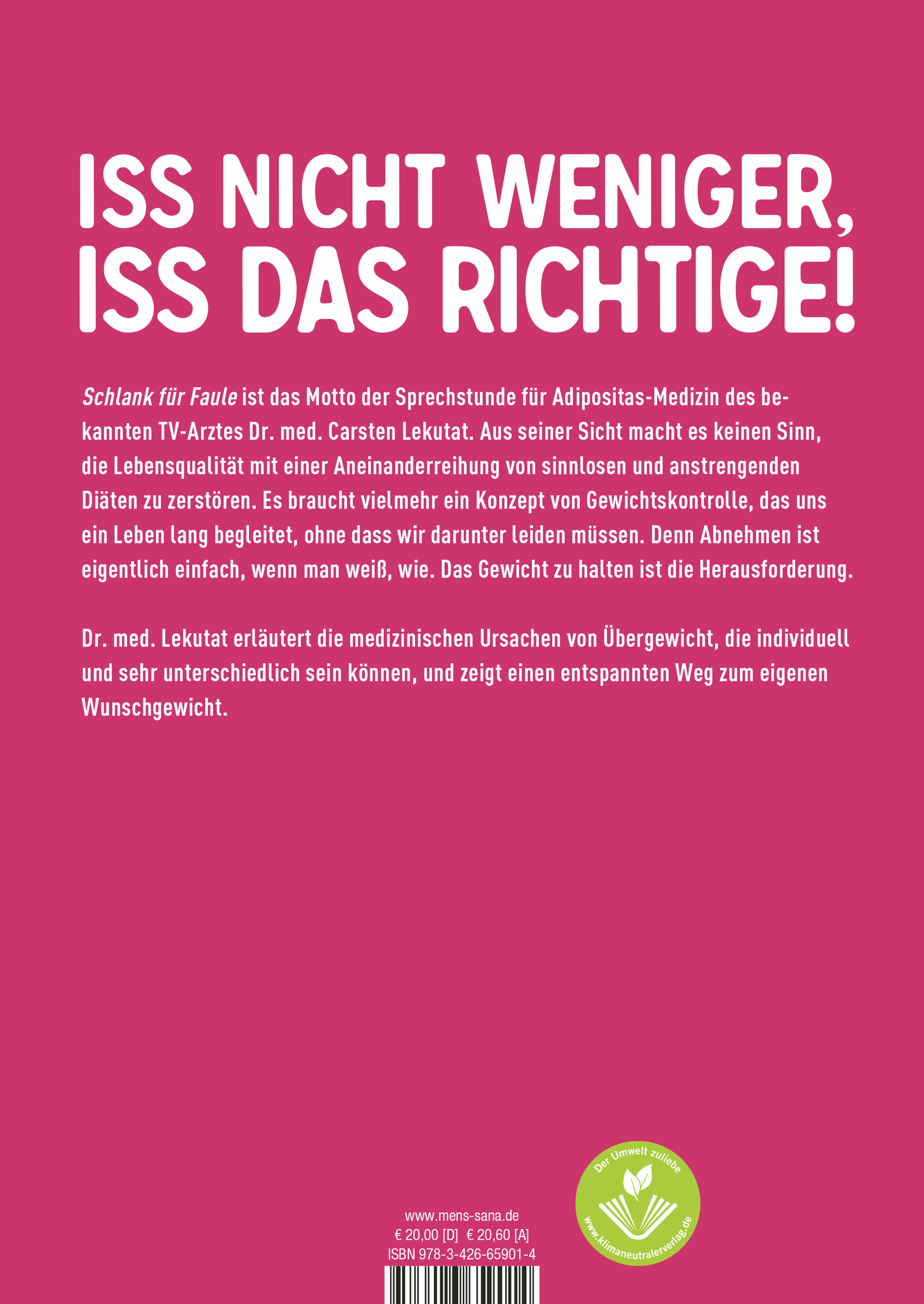 | Schlagworte | Abnehmen • abnehmen buch • abnehmen ohne Diät • Abnehmen ohne Hunger • abnehmen ohne verzicht • Adipositas • Bauchfett • checkliste gesund essen • checklisten zum abnehmen • Dauerhaft Abnehmen • Dauerhaft schlank • dauerhaft zum Wunschgewicht • diätfrei abnehmen • Diät-Rezepte • die lekutat-methode • Dr. med. Carsten Lekutat • endlich schlank • Ernährungs-Docs • Essverhalten ändern • faulschlank • gesünder ernähren • Gesunde Rezepte • gesund genießen • Gesundheit für Faule • Gewicht halten • Gewichtskontrolle • Gewicht verlieren • Jo-Jo-Effekt • Konzept Gewichtskontrolle • lekutat gesundheit für faule • MDR Hauptsache Gesund • Motivationsbuch • nie wieder Diät • ratgeber abnehmen • ratgeber diät • Ratgeber Ernährung • Ratgeber Gesunde Ernährung • Ratgeber Gesundheit • Raus aus dem Stress • Rezepte zum Abnehmen • richtig essen • Sachbuch Gesundheit • Schlank für Faule • Stoffwechsel ändern • tipps zum abnehmen • übergewicht loswerden • WDR Gesundmacher • Wunschgewicht |