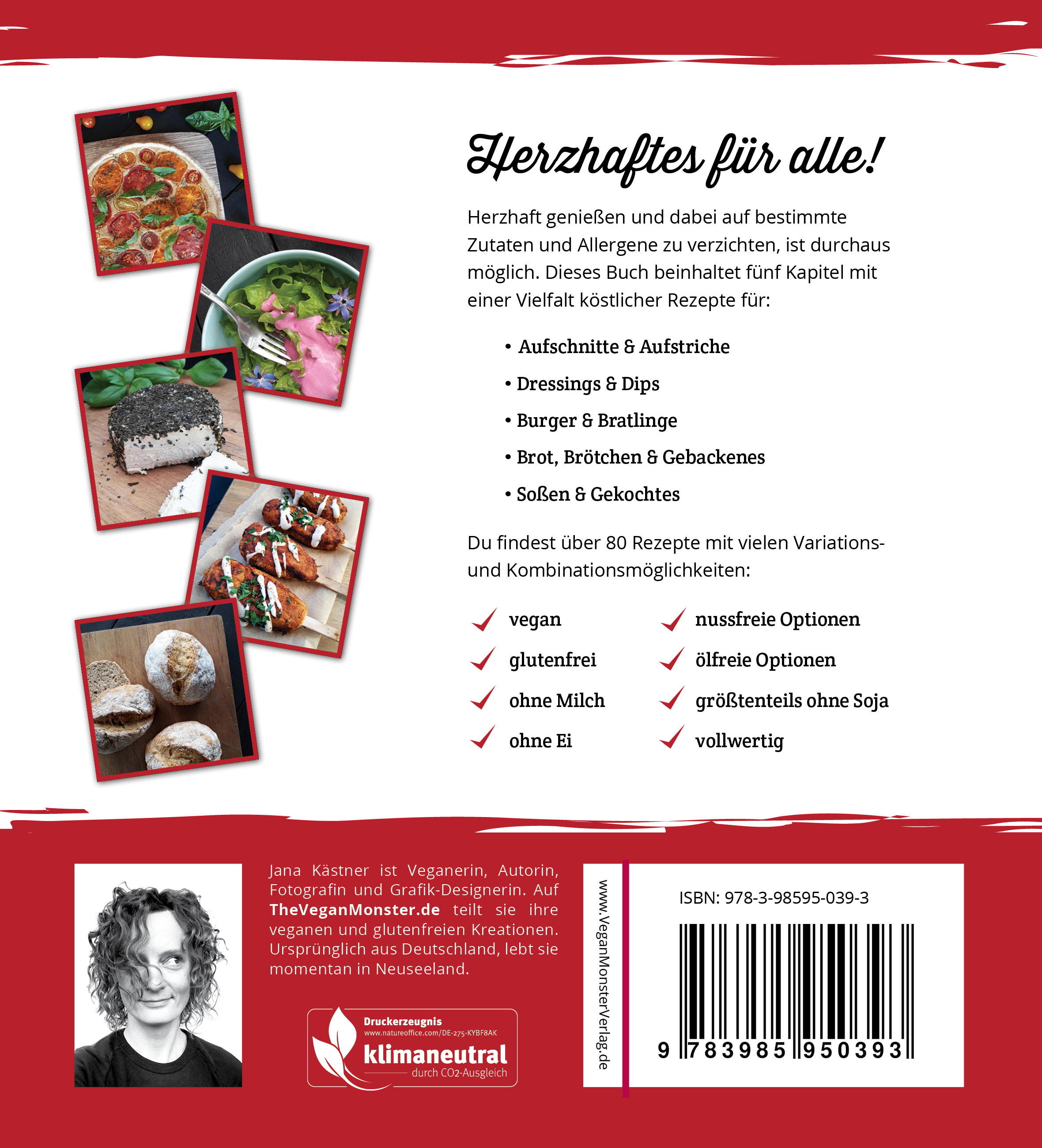 Es ist soweit! Die Zeit des Wartens ist vorbei und ich freue mich, mein neues Buch vorstellen zu können. Während es sich im letzten Buch rund um Süßes drehte, steht nun das Herzhafte im Mittelpunkt. In den letzten Jahren ist viel geschehen in meinem Leben. Unter anderem kam die Diagnose Hashimoto, was zunächst schon ein Schock war. Mit der Unterstützung holistischer Ernährungsberatung habe ich nun eine Liste von Nahrungsmitteln erarbeitet, die ich momentan meide (neben Gluten und Milchprodukten), um meinem Körper Entlastung zu geben. Für mich stehen jetzt auch Soja und Öl (vor allem Sonnenblumenkernöl) auf der Liste der zu vermeidenden Zutaten. Deswegen befinden sich in diesem Buch nicht nur vegane und glutenfreie Rezepte, die meisten sind auch ohne Soja und ohne Öl, oder sie enthalten eine ölfreie Option. Dabei war es mir sehr wichtig zu zeigen, dass es selbst mit solchen Einschränkungen immer noch möglich ist, eine farbenfrohe und abwechslungsreiche Vielfalt zu essen. Ich gebe mir Mühe, die Rezepte so allergiefreundlich wie möglich zu gestalten, oder alternative Zutaten anzubieten. In diesem Buch findest du nicht nur die besten herzhaften Rezepte vom Blog, sondern eine ganze Reihe von neuen, aufregenden, exklusiven Rezepten. Wie auch auf meinem Blog lege ich Wert auf vollwertige, möglichst wenige Zutaten und einfach umzusetzende Rezepte. Vielen Dank an meine Familie, die mich wieder besonders motiviert und unterstützt hat. Und an Herrn Vegan Monster, der weiterhin meine Kreationen testet und sich mit der einen oder anderen leicht verwüsteten Küche geduldig abfindet. Und natürlich auch ein herzliches Dankeschön an all meine Leser*innen. Eure Kommentare, Tipps und Fragen haben mich stets ermutigt, diesen Weg weiter zu gehen. Viel Spaß beim Nachkochen, Ausprobieren und Genießen. Alles Liebe Jana