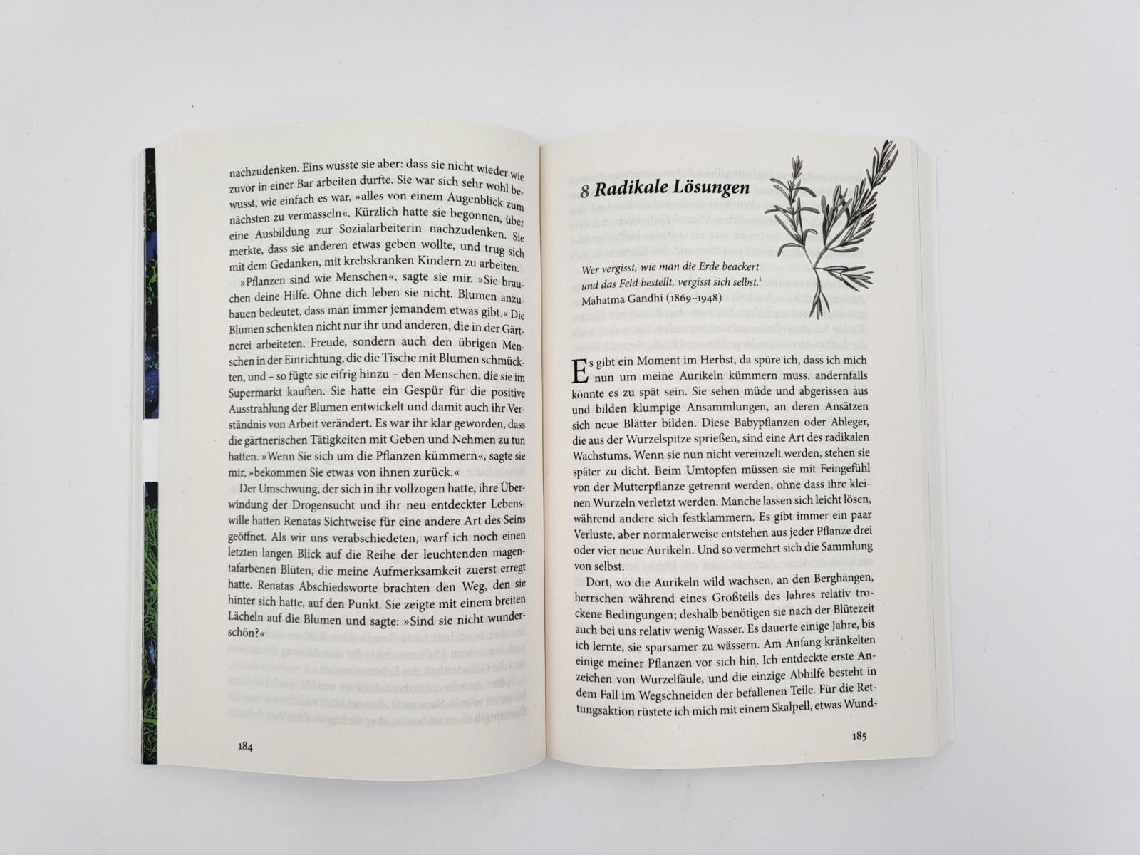 1 Die Anfänge2 Grüne Natur - menschliche Natur3 Samen und Selbstvertrauen4 Der sichere grüne Raum5 Natur in der Stadt6 Wurzeln7 Flower-Power8 Radikale Lösungen9 Krieg und Gartenarbeit10 Die letzte Lebensphase11 Gartenzeit12 Blick aus dem Krankenzimmer13 Grüne KapselDankLiteraturBildnachweisRegister