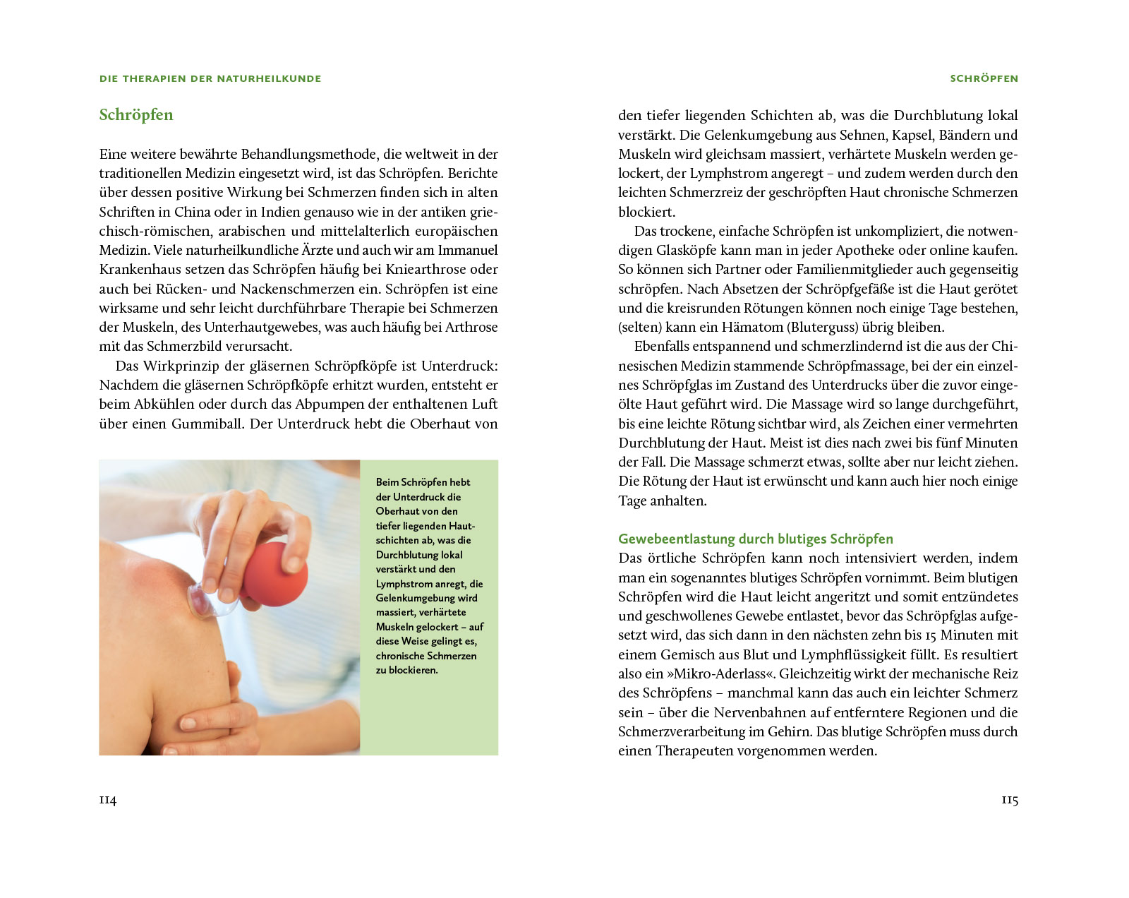 Viel zu wenig beachtet und genutzt werden die vielfältigen Verfahren der Naturheilkunde bei Arthrose, Rheuma und Gelenkschmerzen, die oft als Folge unseres modernen Lebensstils auftreten: Bewegungsmangel, Ernährung, Stress, Übergewicht. Das Spektrum der naturheilkundlichen Behandlungsmethoden ist überraschend breit: von Heilfasten, Yoga, speziellen Gelenkübungstechniken, Heilpflanzentherapie, Kneipp-Therapie bis zu Akupunktur, Ayurveda, Blutegeln und Schröpfen.