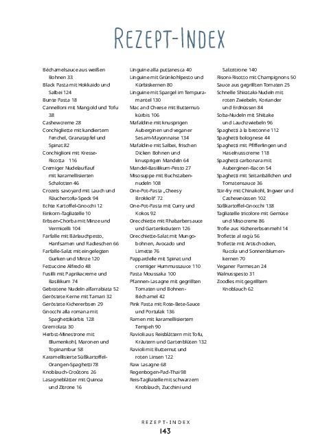 Im Rezeptteil lassen einem die leckeren Food-Fotos und Rezepte das Wasser im Mund zusammenlaufen: Süßkartoffel-Spaghetti mit karamellisierten Orangen, feurig scharfe Udon-Nudeln, Black Pasta mit Hokkaido und Salbei oder Conchiglioni mit Brunnenkresse-Ricotta. Dieses Buch ist eine Liebeserklärung an die Pasta und die italienische Küche. Die wunderbaren und ausgefallenen Nudel-Rezepte bringen Abwechslung in den Speiseplan - übrigens auch für alle, bei denen bisher keine Pasta ohne Fleisch, Sahne, Käse oder Butter auf den Tisch kam. Achtung - Suchtgefahr!