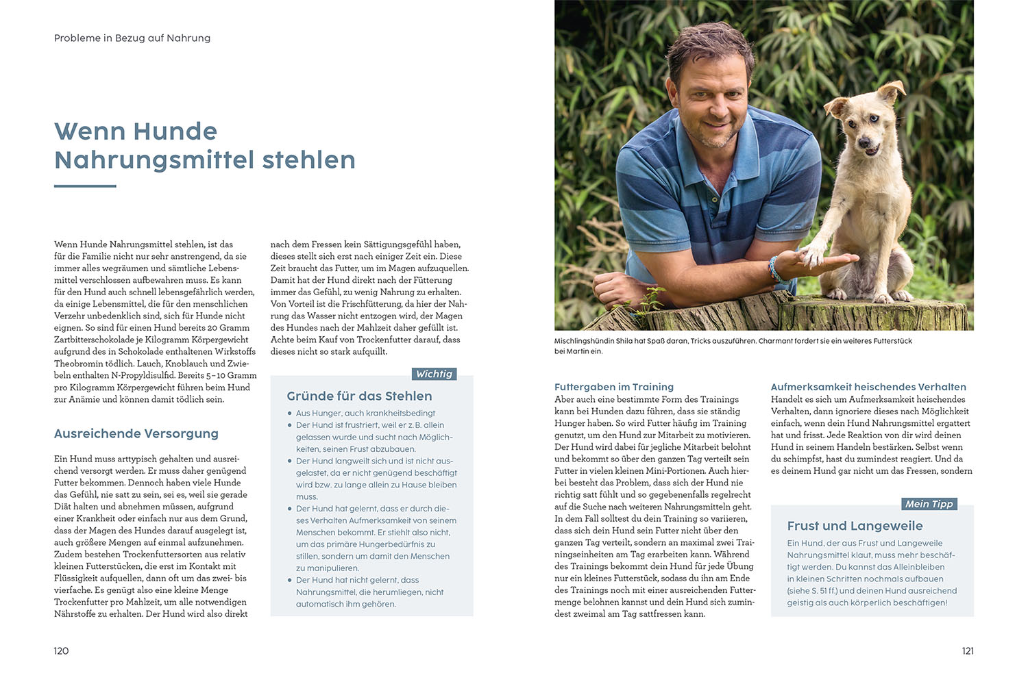 Ob Besuch-Anspringen, Nicht-allein-bleiben-Können, An-der-Leine-Ziehen, Aggression gegen Artgenossen an der Leine oder auf dem Spaziergang alles fressen, auch Giftköder - die Probleme im Hundealltag sind so vielfältig wie die Vierbeiner und ihre Halter. "Hundeprofi" Martin Rütter weiß, wie belastend unerwünschtes Verhalten für die Mensch-Hund-Beziehung sein kann. Einfühlsam beschreibt er die häufigsten Probleme, klärt über die Ursachen auf und bietet erprobte Lösungen. Seine Trainingsanleitungen sind leicht nachvollziehbar und zeigen, wie man in kleinen Schritten Verhalten ändern oder sich besser darauf einstellen kann.