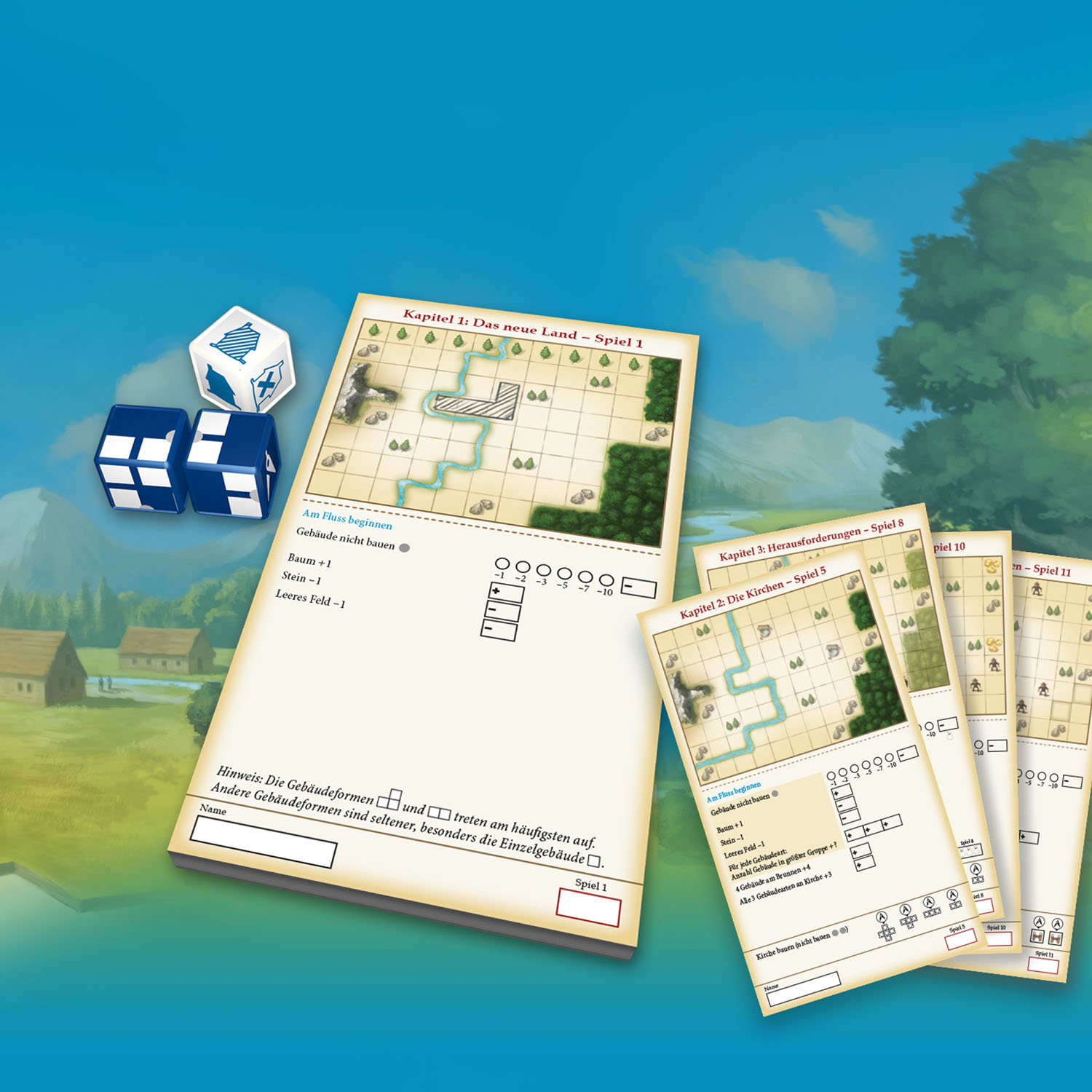 Abwechslungsreiches Spielerlebnis durch 4 spannende Kapitel. Mit Würfel und Stift erschaffen die Spielerinnen und Spieler ihre einzigartige Stadt. Einfache Regeln und kurze Spieldauer. Für 1 - 6 Spielerinnen und Spieler ab 10 Jahren. In diesem Würfelspiel erschaffen die 1-6 Spielerinnen und Spieler über 4 Kapitel mit je 3 Spielen ihre einzigartige Stadt. Beim Bauen gilt es, immer neue Herausforderungen zu meistern. Die Würfel geben jeweils für alle vor, welches Gebäude mit einem Stift auf dem eigenen Blatt eingezeichnet wird. Spannendes Gesellschaftsspiel ab 10 Jahren, in dem die eigene Stadt von Spiel zu Spiel wächst und wächst!