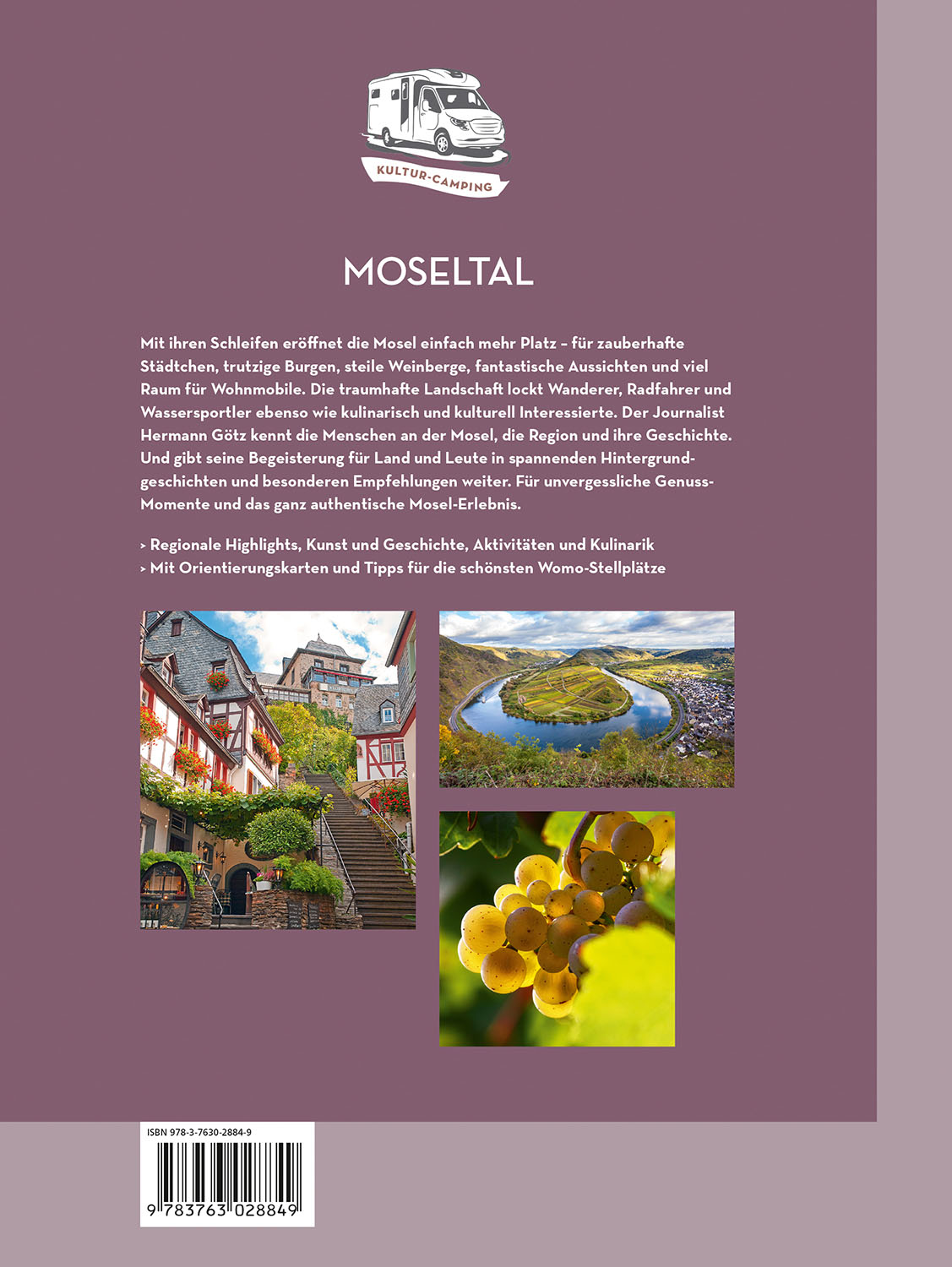 Kultur und Genuss mit dem Wohnmobil im Tal der Mosel. Von den schönsten WoMo-Stellplätzen aus Kulturschätze, Landschaft, Menschen und kulinarische Spezialitäten entdecken. Mit spannenden Hintergrundinfos, Geheimtipps und Ideen für vielfältige Aktivitäten.