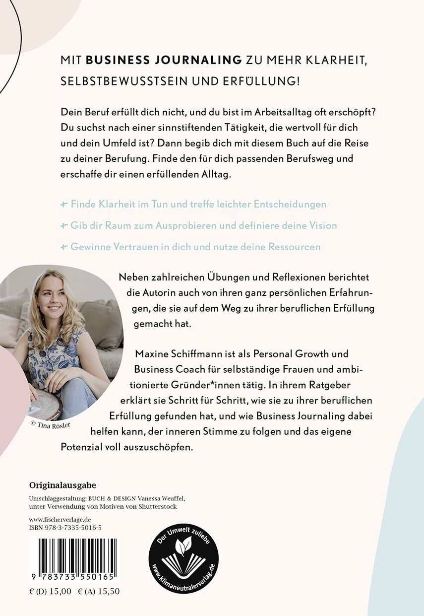 Neben zahlreichen Übungen und Reflexionen berichtet Maxine Schiffmann auch von ihren ganz persönlichen Erfahrungen, die sie auf dem Weg zu ihrer beruflichen Erfüllung gemacht hat.