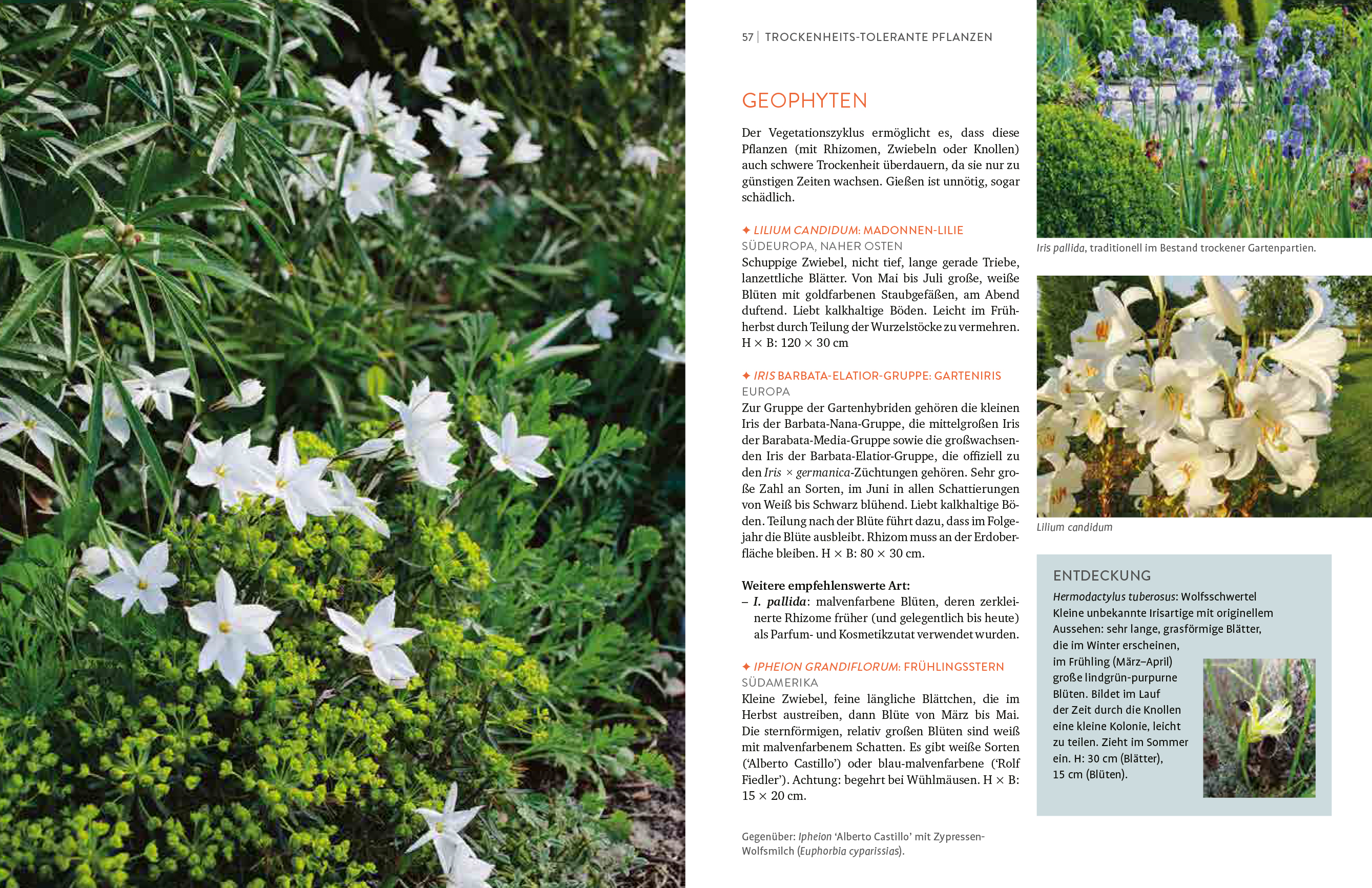 Sind Sie angesichts der klimatischen Veränderungen auf der Suche nach Pflanzen, die auch trockene Phasen sehr gut überstehen? Dann ist dieses Buch genau das richtige! Entdecken Sie mithilfe der mehr als 600 Fotos über 450 trockenheitstolerante Pflanzen, an denen Sie auch in heißen Sommern Freude haben, ohne ständig gießen zu müssen. Bäume, Sträucher, Stauden: Durch eine klare Untergliederung finden Sie ganz schnell und einfach die passenden Pflanzen mit der gewünschten Vegetationshöhe für vollsonnige, halbschattige oder schattige Gartenbereiche. Lernen Sie darüber hinaus, wie Sie den Wasserverbrauch effektiv reduzieren können - so sind Sie bestens gewappnet für die nächste Hitzewelle.
