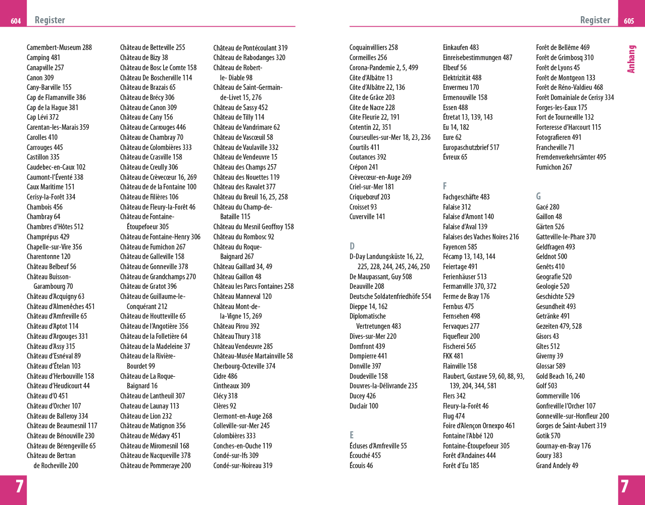 Beeindruckende Landschaften, geschichtsträchtige Monumente, reizvolle Ortschaften und prachtvolle Schlösser - die Normandie ist ein vielfältiges Urlaubsziel. Neben historischen Orten wie dem Haus und Garten des Künstlers Claude Monet oder der Abtei auf dem Mont St. Michel bietet auch die Natur wunderschöne Flecken: die weißen Kreidefelsen von Étretat oder die Strände an der Côte Fleurie, welche zu den schönsten Frankreichs gehören. Die Kathedrale von Rouen, an der man alle gotischen Baustile nachvollziehen kann, das Château du Breuil aus dem 17. Jahrhundert oder Beuvron-en-Auge, das als eines der schönsten Dörfer des Pays d'Auge gilt, sind sehenswerte Ausflugsziele ebenso wie die Hafenstadt Honfleur mit seinen Cafés, die einen wundervollen Blick aufs Meer erlauben. Die breiten Strände und Gewässer der Normandie bieten zudem ein ideales Terrain für sportliche Aktivitäten wie Surfen oder Strandsegeln.Jedes Kapitel des Reiseführers beginnt mit einer Doppelseite, auf der die Inhalte mit einer Übersichtskarte der Region, Highlights und Seitenverweisen vorgestellt werden. Farblich auf die Kapitel abgestimmte Seitenzahlkästchen erleichtern die Orientierung im Buch. Natürlich enthält der Reiseführer die bewährten und praktischen Tipps zu Reisefragen von A-Z. Tipps für Aktivitäten sowie die besonderen Empfehlungen der Autoren ermöglichen eine gute Reiseplanung. 34 Stadtpläne und Karten, ein ausführliches Register sowie ein Glossar und eine kleine Sprachhilfe Französisch sorgen für ein schnelles Zurechtfinden unterwegs.
