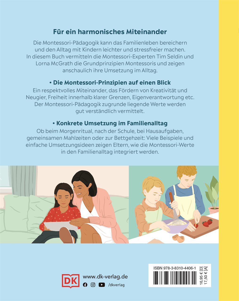 | Schlagworte | Achtsamkeit • Eltern Kind Beziehung • Elternratgeber • Familie • Freiheit Kind • gegenseitiger Respekt • Harmonie • Liebevoll erziehen • Montessori • Montessori Buch • Montessori Erziehung • montessori für eltern • Montessori Konzept • Montessori Pädagogik • Montessori-Prinzipien • Neugier wecken • Respektvoller Umgang • selbststandig Kind • selbstständig Kind • Spaß am Lernen |