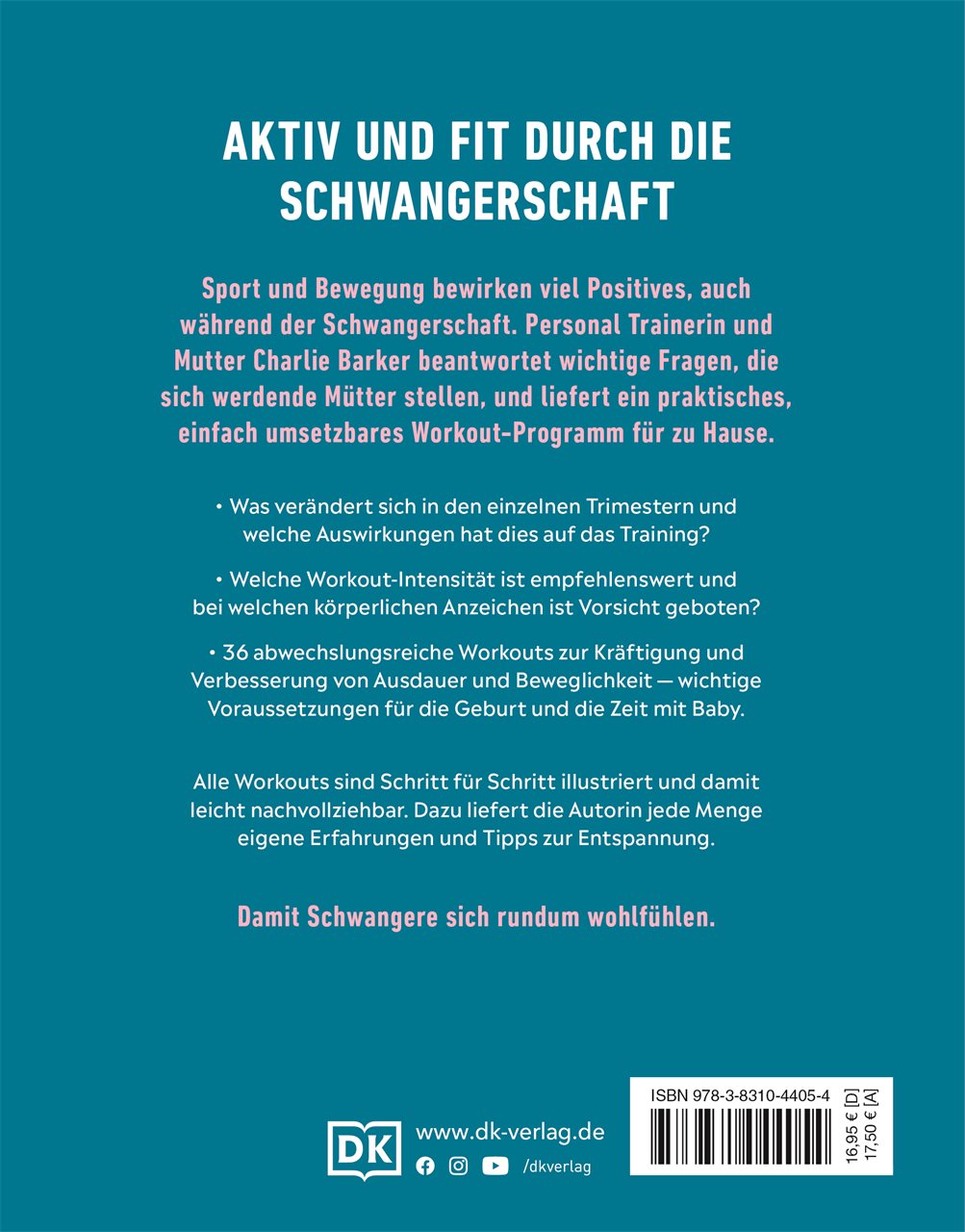 Aktiv und fit in der Schwangerschaft - mit diesem Schwangerschaftsbuch kein Problem. 36 wirkungsvolle Workouts halten Schwangere in den 9 Monaten körperlich gesund - mit minimalem Equipment. Dazu gibt es Wohlfühl-Tipps zur Entspannung. Aus eigener Erfahrung weiß Autorin und Personal Trainerin Charlie Barker genau, worauf es bei Schwangerschafts-Fitness ankommt: Mit welcher Workout-Intensität & -dauer fühle ich mich wohl? Welche Übungen sind in den verschiedenen Trimestern sinnvoll?
