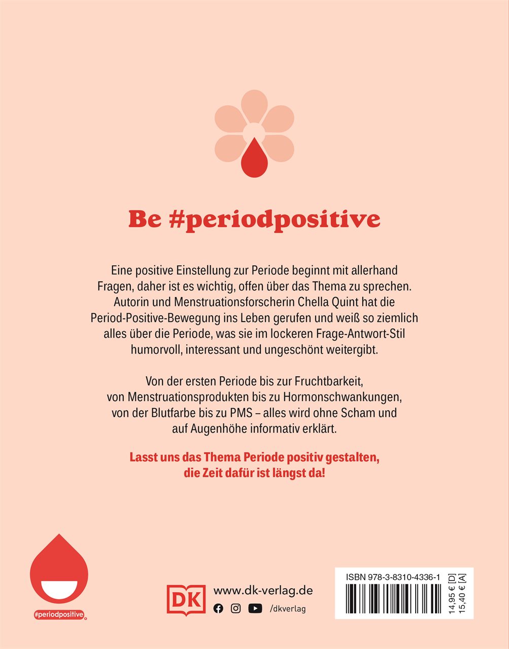 Eine positive Einstellung zur Periode beginnt damit Fragen zu stellen. Dieses informative, ehrliche und fesselnde Buch deckt alle Fragen rund um die Periode ab. Die Antworten der Gründerin der Period-Positive-Bewegung und Menstruationsforscherin Chella Quint sind offen, lustig und faszinierend. Chella zeigt, dass Menstruation und Zyklus keine Tabus sind, es keine richtigen oder falschen Fragen dazu gibt und vor allem, dass eine positive Einstellung zur Periode das eigene Wohlbefinden und den Umgang damit beeinflusst. Es ist an der Zeit, die Periode positiv zu gestalten.