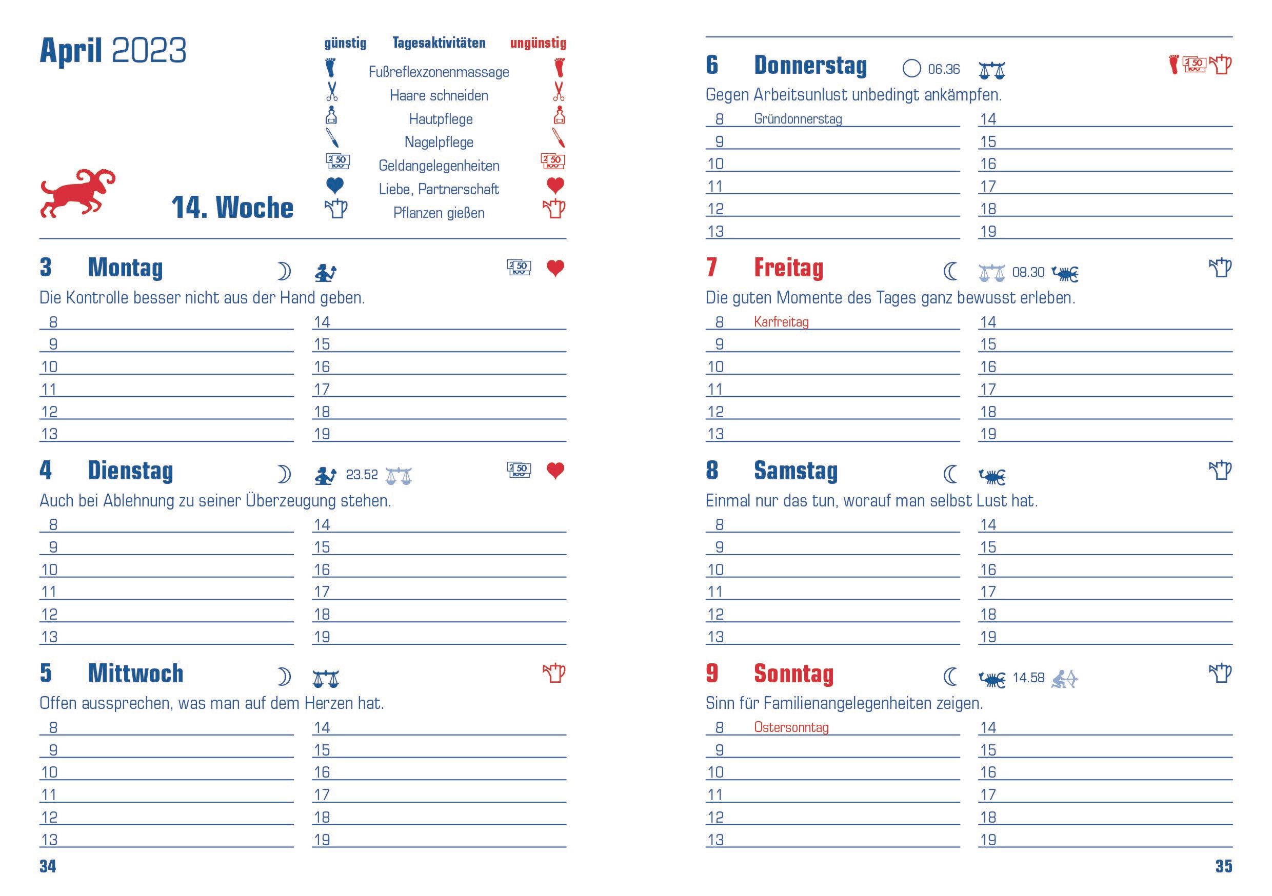 Mit herausnehmbarem ASTRO-JAHRESPLANER